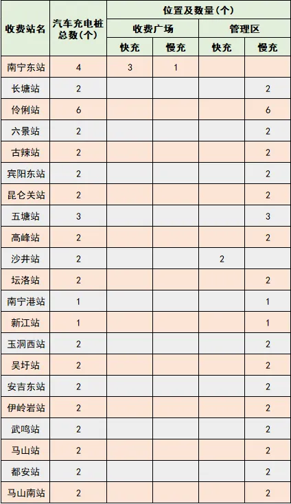 为满足节日期间新能源汽车出行充电需求,缓解服务区车辆排队充电压力,为公众提供更加安全、畅通、暖心的服务,南宁运营公司所辖21个收费站管理区充电桩对外开放运营。