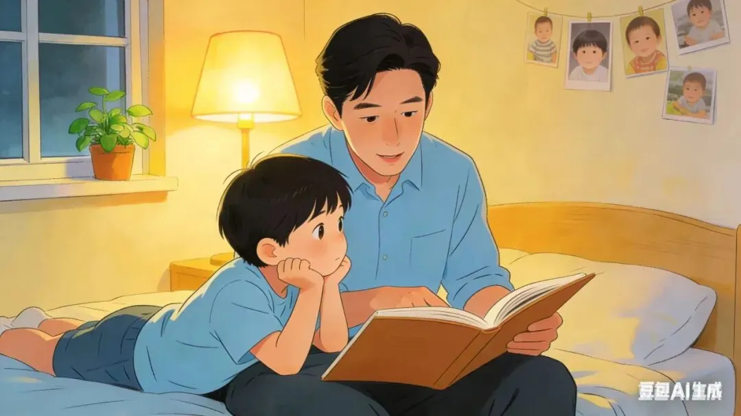 选一个温暖的午后或夜晚,孩子和家长靠在一起读书。