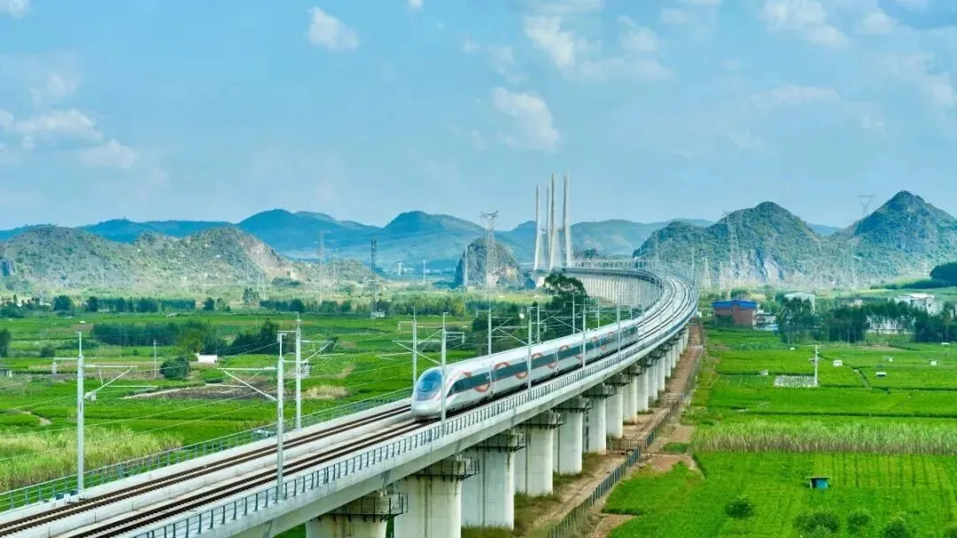 复兴号动车组行驶在南珠高铁南玉段百合郁江特大桥。图片来源:广西南玉铁路有限公司
