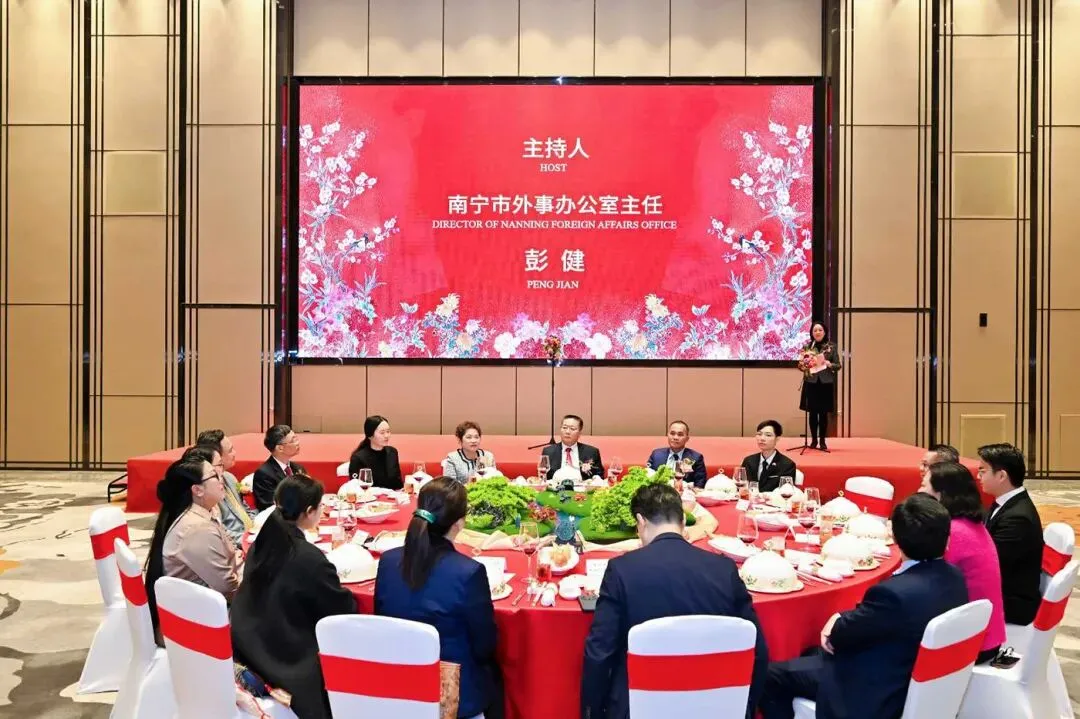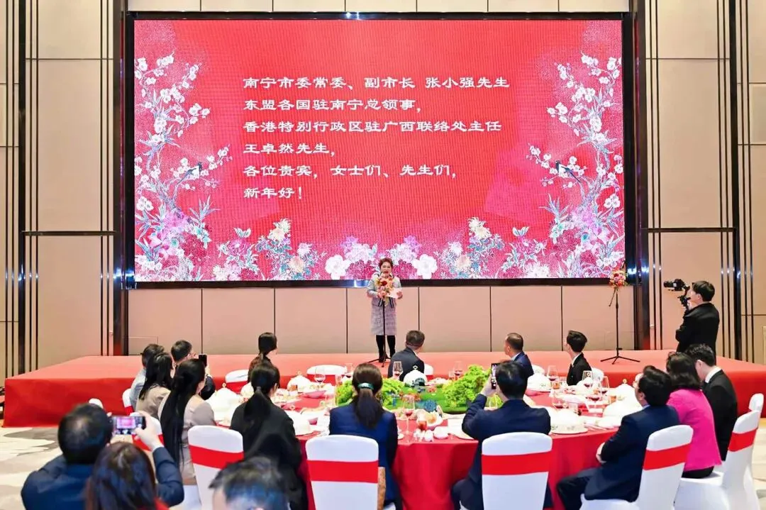 总领事对南宁市人民政府及南宁市外事办公室举办此次活动表示感谢,指出这体现了南宁市与东盟领团之间紧密的关系,双方经常见面并共同持续举办活动。此外,总领事特别赞赏南宁市在推动中国—东盟人工智能领域合作方面取得的成就,2025年成功设立中国—东盟人工智能应用合作中心,简称南A中心,并已将合作拓展至老挝和越南等东盟成员国。2026年,东盟国家驻邕领团愿与南宁市人民政府在各领域持续深化合作,并祝愿各位在马年幸福安康、事业兴旺。此外,总领事还通过南宁电视台向南宁市民送上新春祝福。