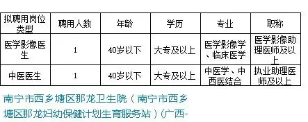 南宁市西乡塘区那龙卫生院公开招聘编外工作人员公告