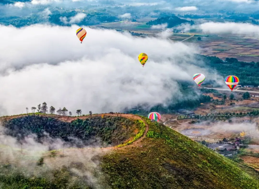 而乘坐热气球升空,便是解锁这份壮阔的最佳方式。无需远赴异国,在百米高空就能俯瞰碗状火山口的肌理,看墨绿色松林覆盖熔岩台地,远山如黛,原野铺翠,360度旋转的视野让每一秒都惊艳不已。