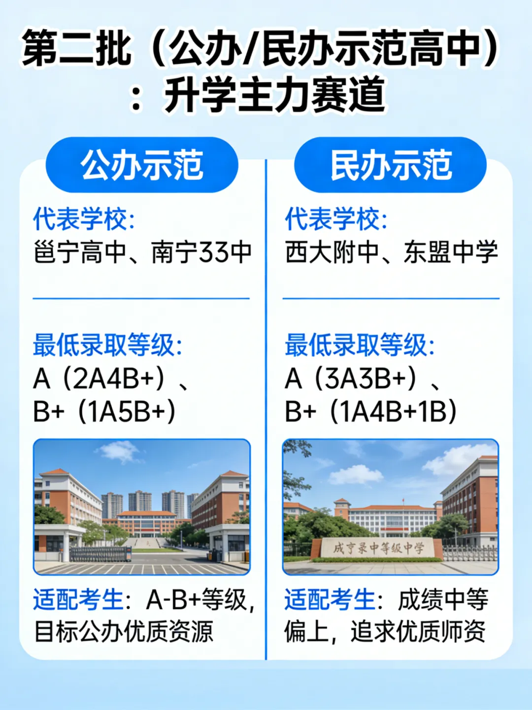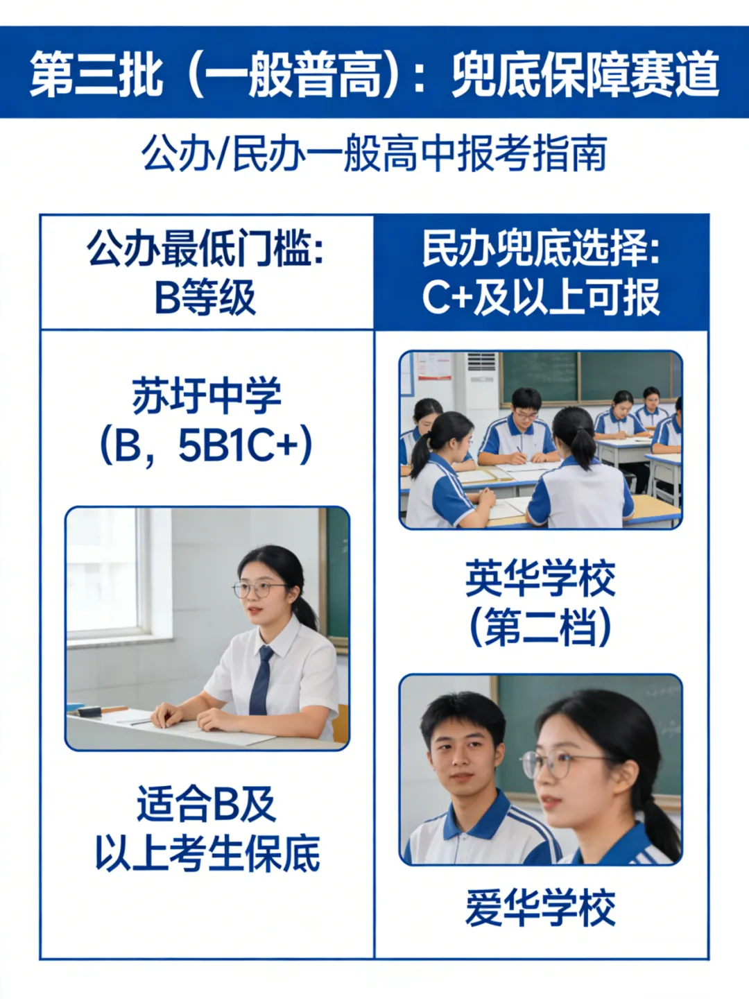 • 稳公办示范:保持年级前20%,总成绩稳定B+及以上,规避单科C及以下;