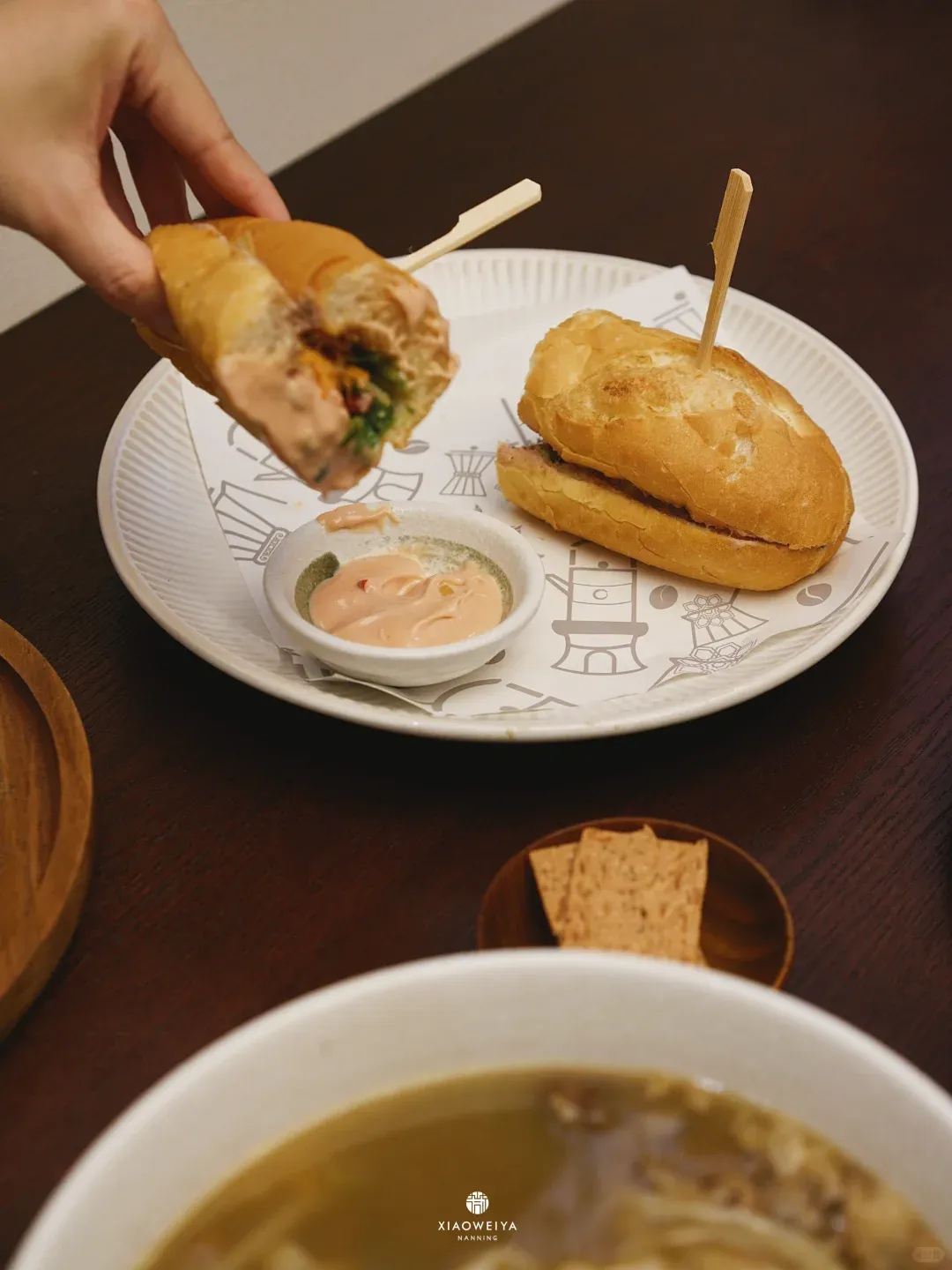 火车头粉汤很鲜甜,牛肉烫得很嫩,法棍皮脆,2人食刚刚好。
