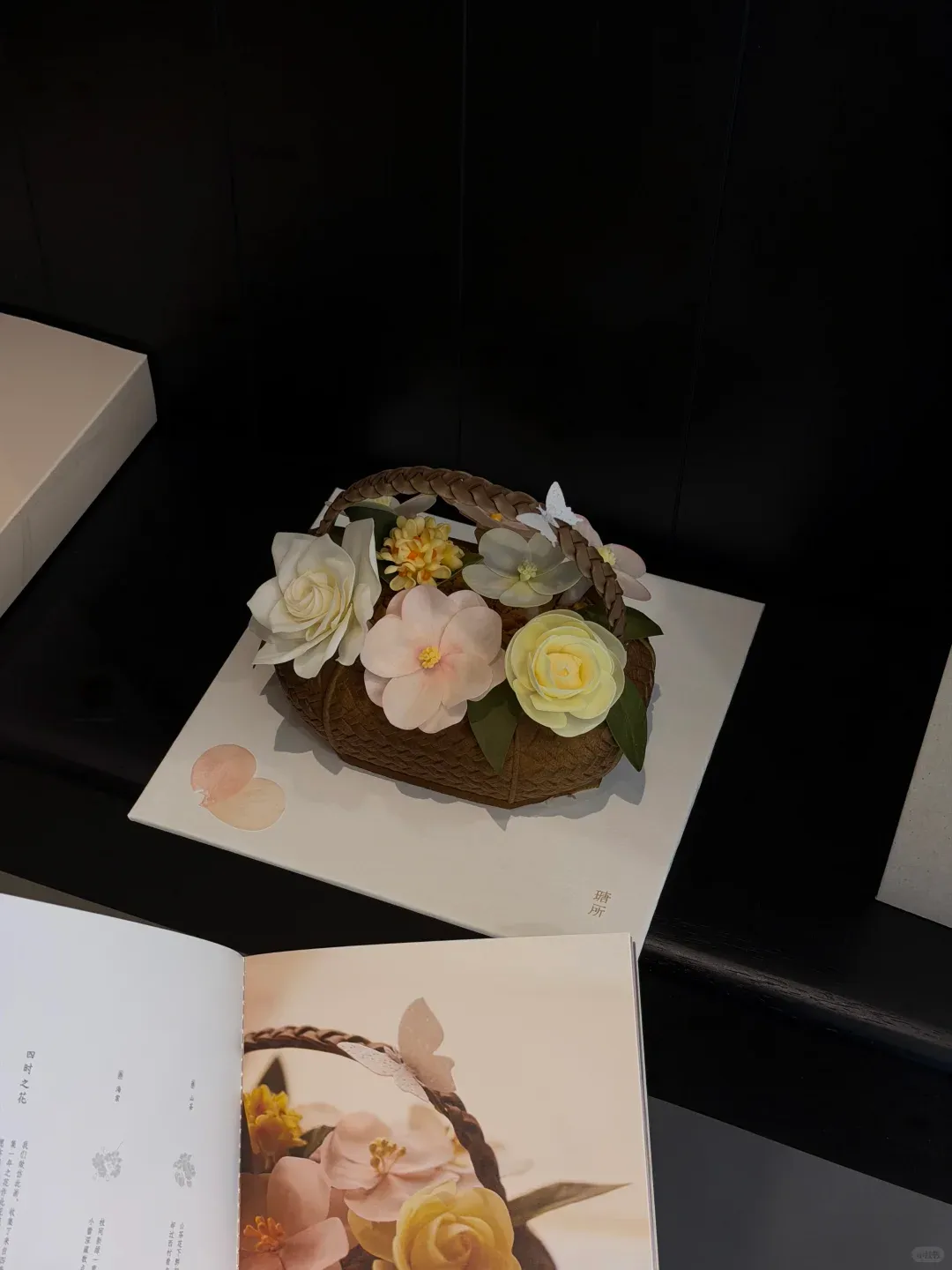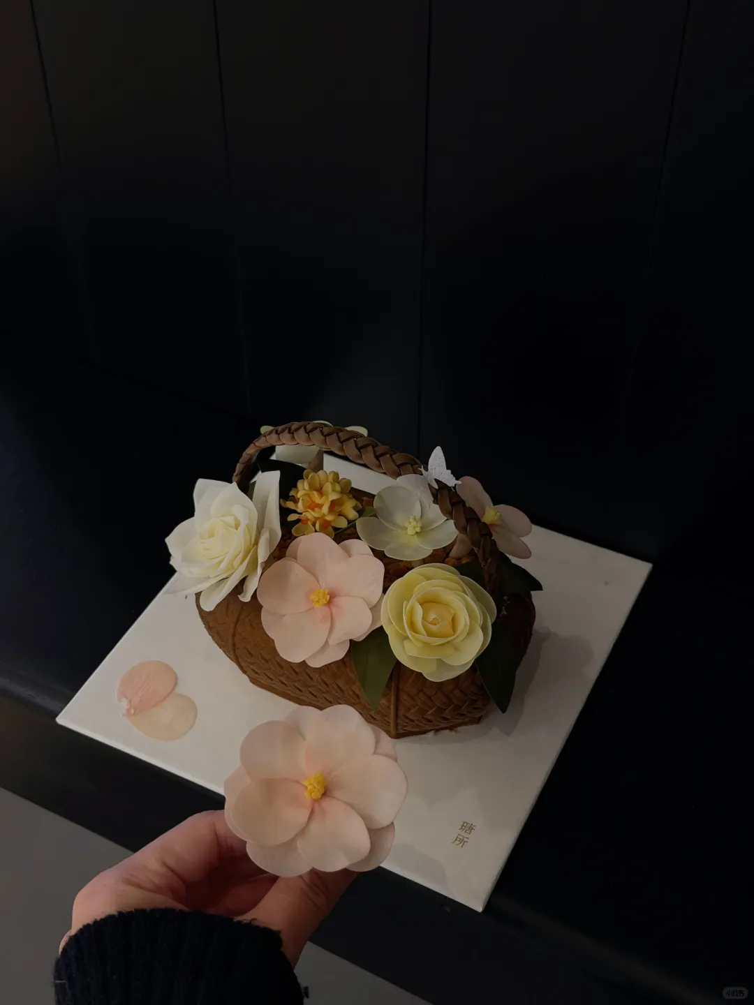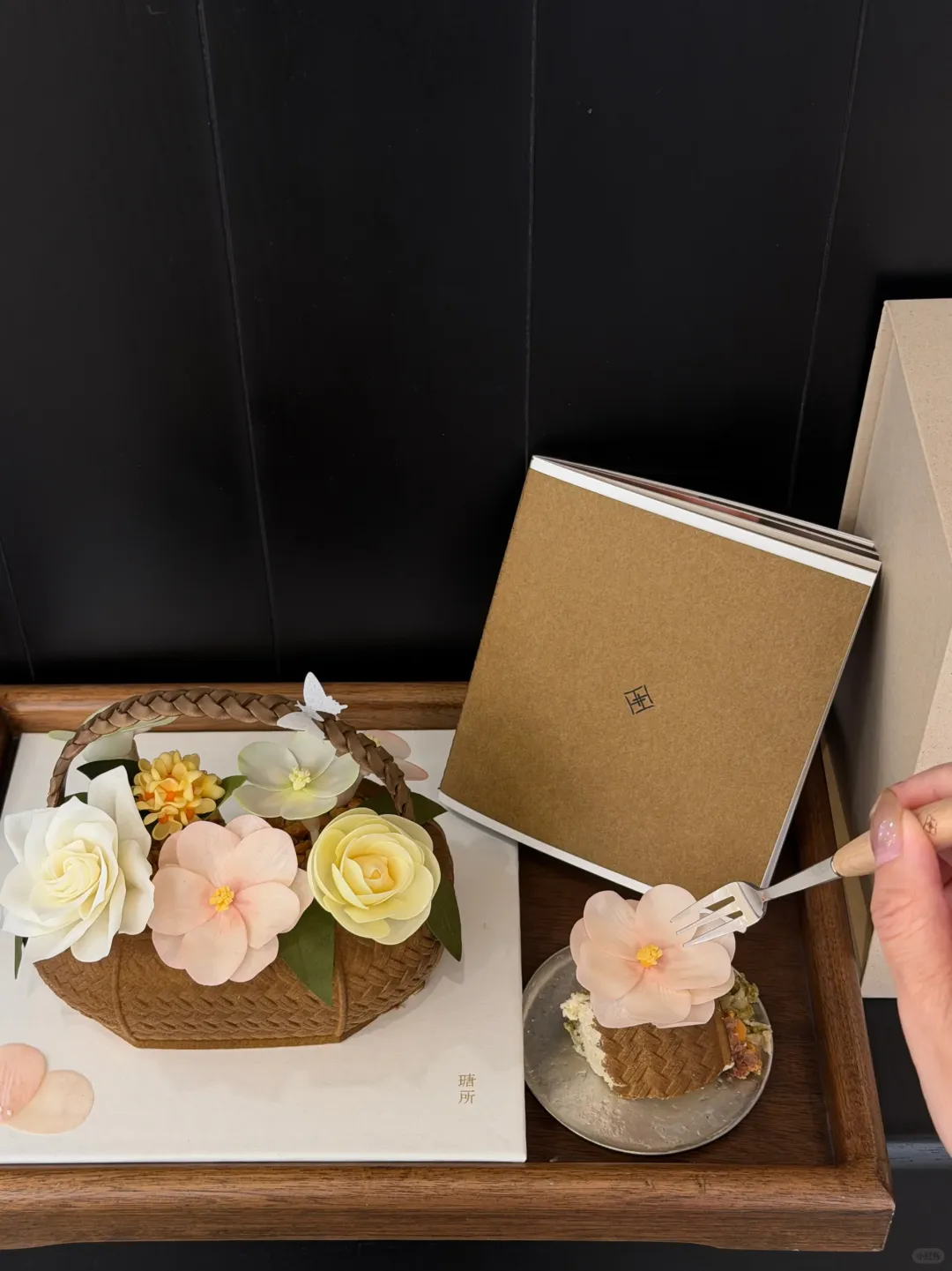 「四时花」是花篮的造型,花朵做得很细致,冰冰凉凉的慕斯内馅不会很腻,整体都很有质感。