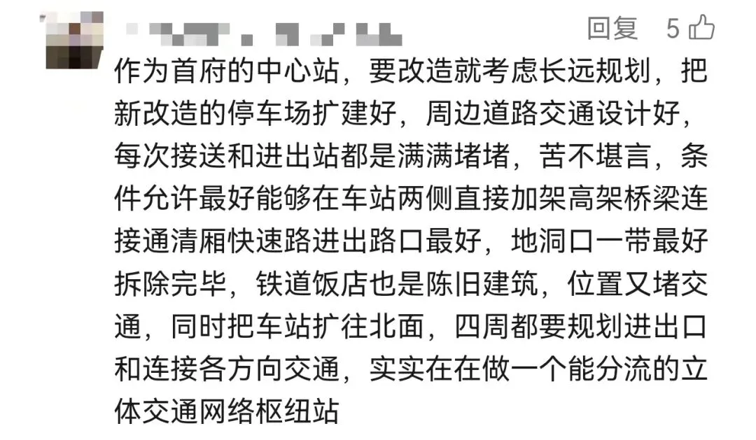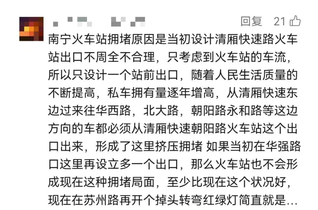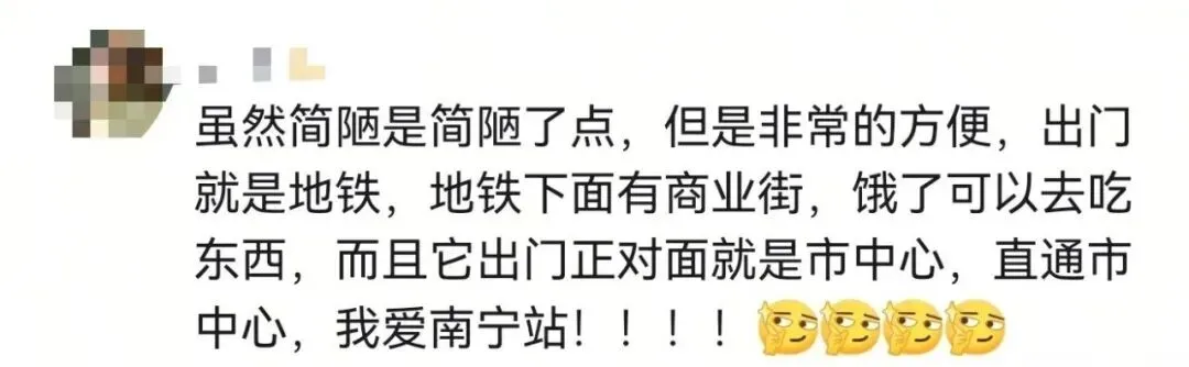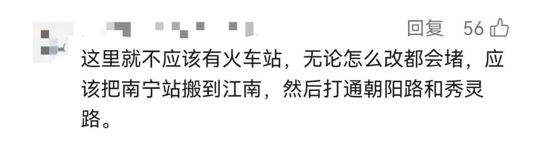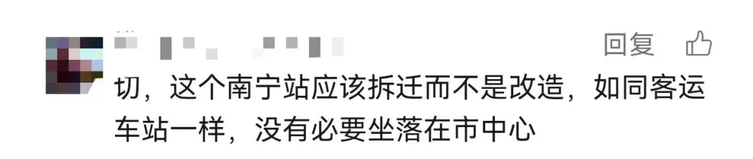有网友认为,南宁站设施老旧,不能代表南宁首府形象的排面。特别是出站口那一条长长的铁皮围挡,被网友戏称:“知道的是到首府了,不知道的还以为进厂了。”因为身处老城区,交通拥堵一直是南宁站周边的一大问题。赶车的时候在中华路被堵过的朋友举个手!甚至有朋友认为,南宁站应该取消或者往外挪,给老城区腾出发展空间。不过也有网友表示,南宁站有南宁站的好,一出了南宁站就是市中心,对游客和住在西乡塘、江南的朋友很友好。新建的南宁东站和南宁北站虽然高大上,但是往返路上的时间太长了。不管争议如何,也无法阻挡南宁站改造的脚步越来越近了。2024年10月,衡阳西路片区城中村改造项目(火车站片区二期地块)集中签约,拆迁补偿标准算下来约14375元/㎡。签约之后,水仙苑地块、北大路区机电地块、衡阳南地块等地居民陆续搬离。