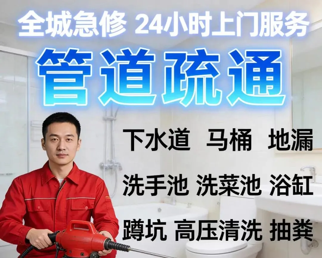 提供24小时同城上门疏通服务,包括下水道疏通、管道清洗、马桶疏通、地漏疏通、浴缸疏通、菜池疏通等。师傅经验丰富、上门迅速、价格透明,服务范围涵盖:疏通主管道、高压清洗管道、抽化粪池、维修水管、安装下水管道、清理隔油池等各类管道维修与清洁服务。