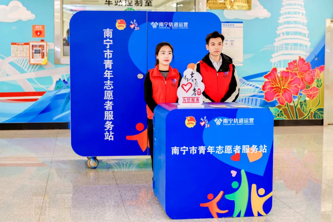 2月2日,共青团南宁市委联合南宁轨道交通投资集团共同打造的南宁市首个全新升级的青年志愿服务示范站,在地铁4号线体育中心西站正式启用。作为服务大型文体活动客流的前沿阵地,该服务站以“统一标识、功能实用、安全舒适”为原则,打造四大特色功能板块,构建起涵盖流动服务、公益宣传、便民保障、专属应援四大维度的综合服务体系,全方位护航乘客出行。