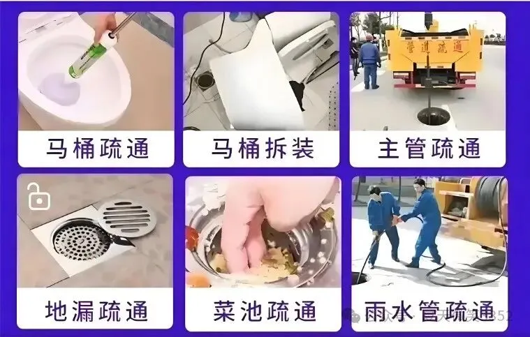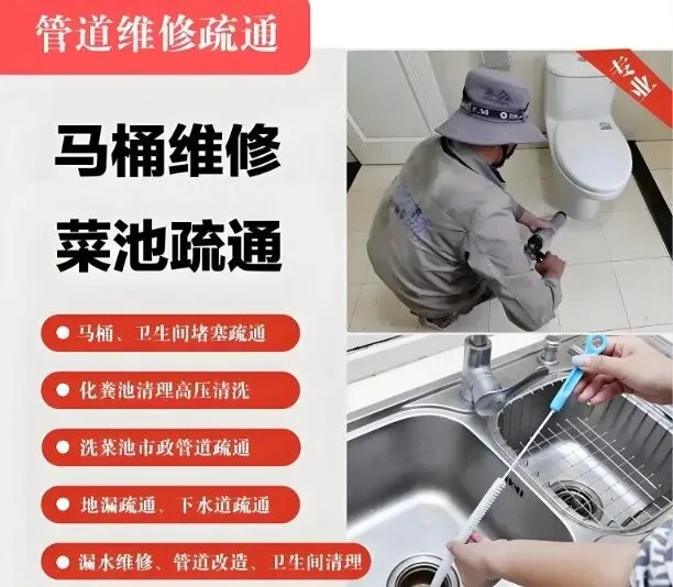 疏通下水道、马桶、蹲厕、地漏、下水管。维修马桶漏水、水管。卫生间除臭、反味处理。脸盆、菜盆、墩布池疏通。通坐便、蹲便、小便池;除尿碱。贵重物品打捞。疏通主管道、疑难管道、市政及工业管道。提供高压清洗、抽粪服务。上下水管安装、改管、维修。