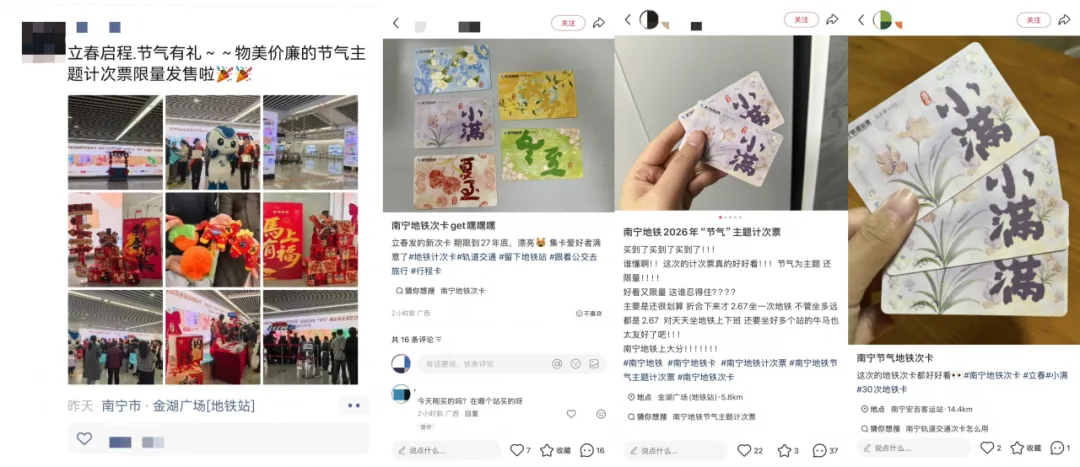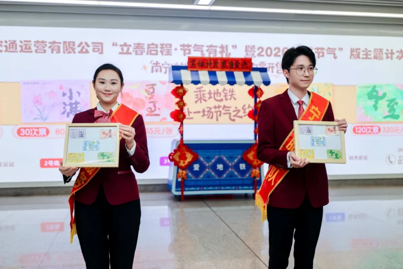 2月4日,南宁地铁2026年节气版主题计次票在立春当天正式发售!这款限量推出的计次票,是地铁融合节气文化与公共交通服务的创新尝试,兼具便捷实用性与文化收藏价值,推出5档票种,适配不同乘客出行需求,首发当天就吸引不少市民乘客购买。