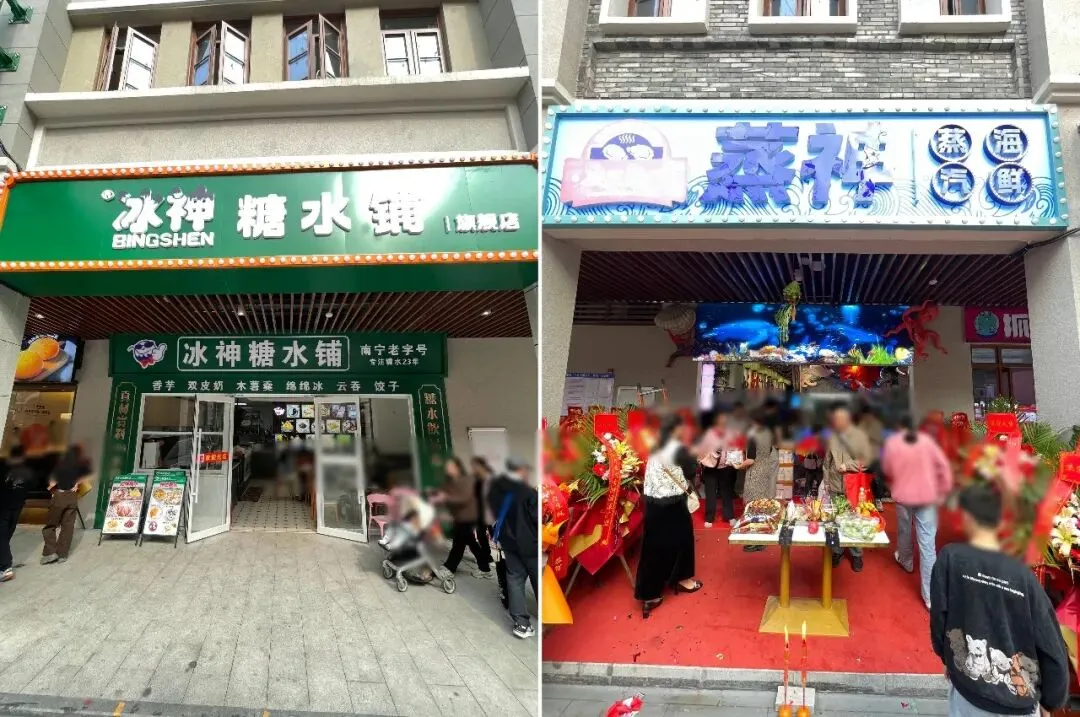 除了酸品王、冰神甜品、梁族卷筒粉等老店外,还多了许多新面孔。