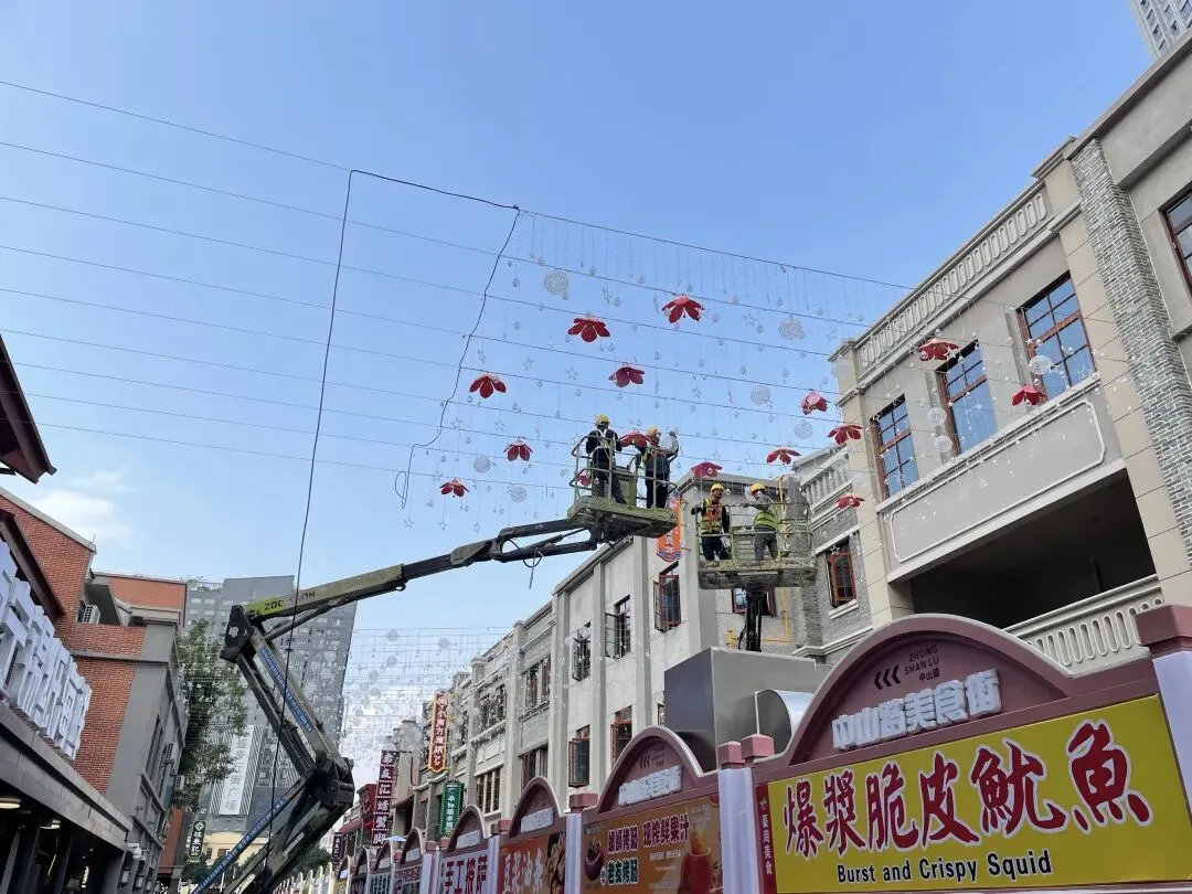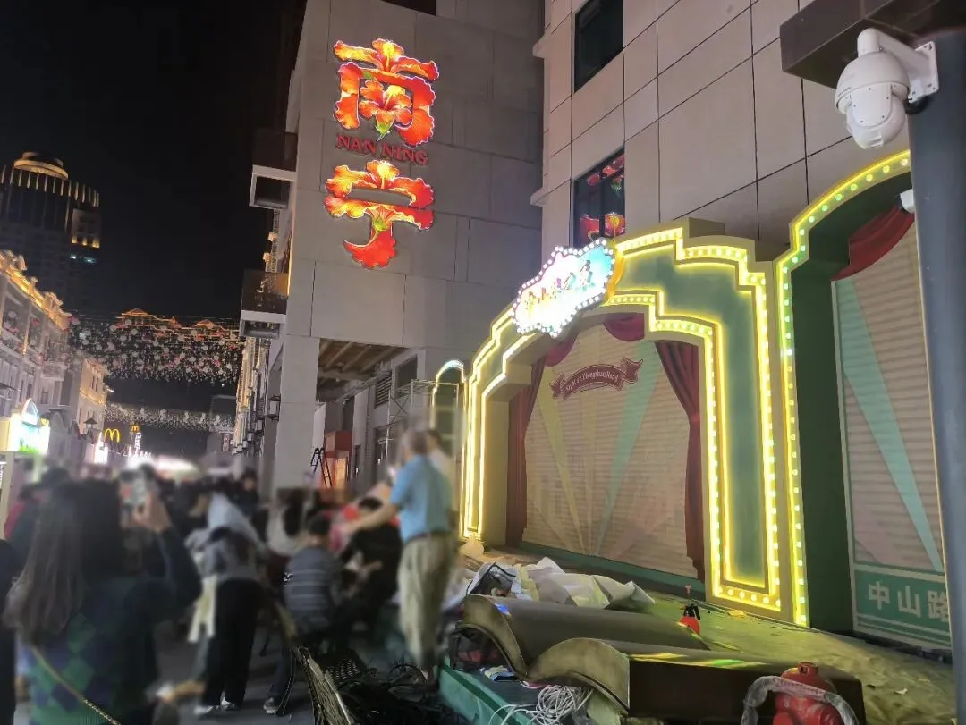 在楼顶旁的“南宁”大标识下,设置了一处标有“中山路之夜”的迷你舞台,不过昨晚还在进行收尾工作。
