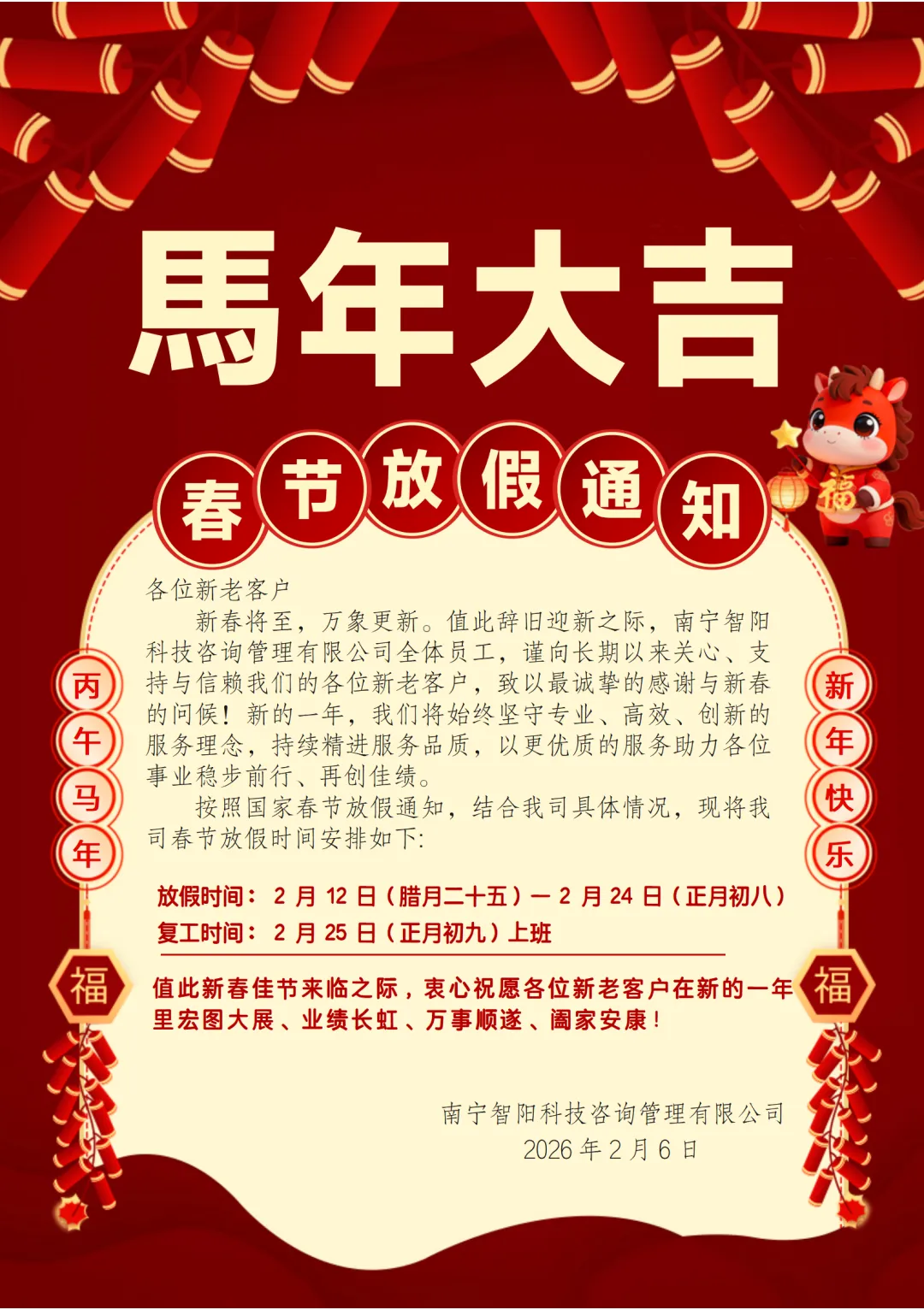 >南宁智阳科技咨询管理有限公司春节放假通知