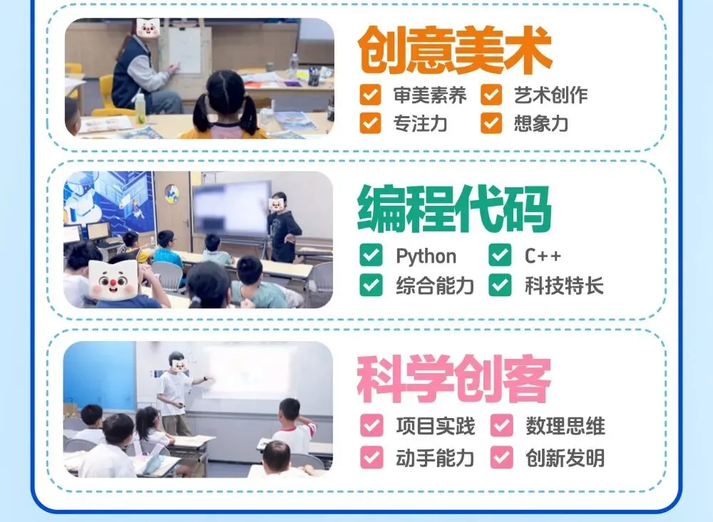 面对小朋友,新东方有编程、美术、科学等素质课程,也有口才、写字、脑力、故事表演等素养课程,还有游学营地喔;