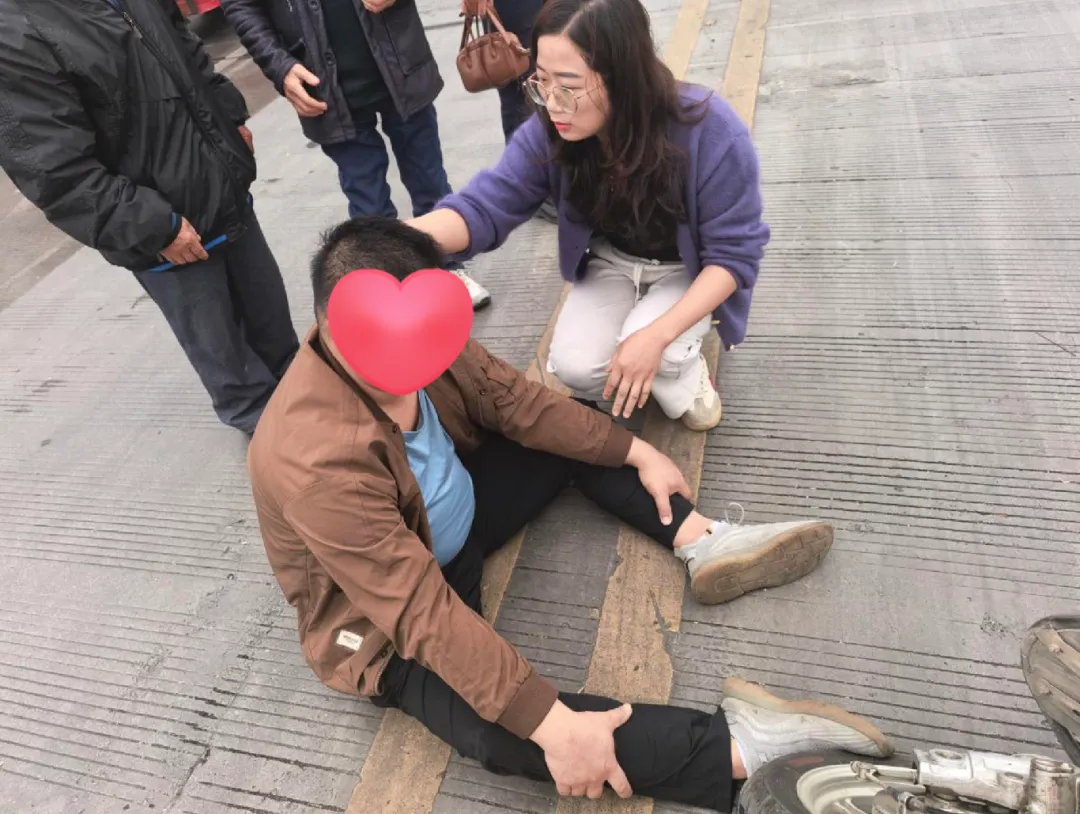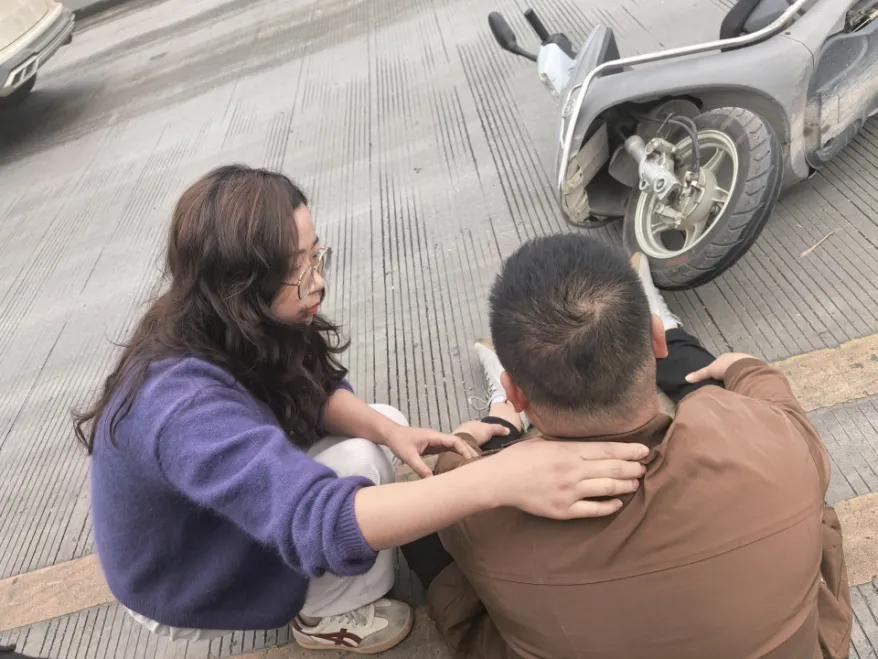 大约两三分钟后,伤者神志逐渐清醒,可自主坐起等待救援,但其自诉头晕、头痛,伴随大汗淋漓。考虑到伤者刚恢复神志,病情仍有波动可能,为避免其出现二次伤害或突发病情变化,廖彩红始终守护在伤者身旁,一边密切监测其伤情变化,一边轻声安抚,耐心缓解伤者的紧张与不适,全程未离开现场。
