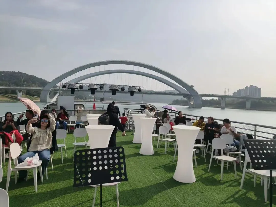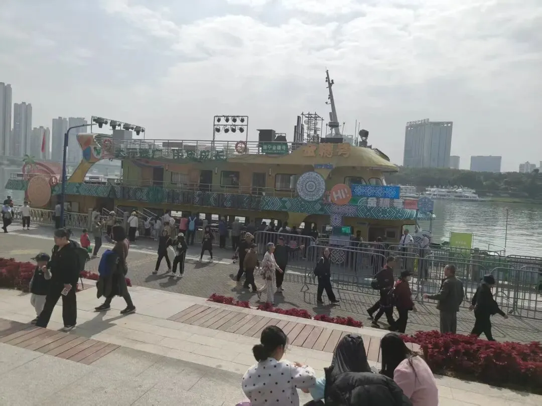 上午9点多,孔庙旅游码头,这里已经热闹非凡,现场排队买了票,因游客较多,建议网上提前购买,微信搜索邕江夜游小程序下单,到现场取票就可以了,现开通的航线有“民生码头—孔庙码头”往返,下面是往返时间:上午10点半,我们准时从孔庙码头出发,单程全程航行时间为75分钟,途经广西文化艺术中心,南宁大桥,亭子码头,凌铁大桥,邕江大桥,还有古城墙,畅游阁等标志性建筑。坐在游船上,欣赏着邕江两岸如画的风景,任由江风佛过脸颊,顿感心情舒畅。上午11点45分,民生码头,熙熙攘攘的人群中,有下船的,取票的,特意来咨询的。相信以后的南宁,因邕江水上巴士的开通,会吸引更多区内外游客来邕游玩。