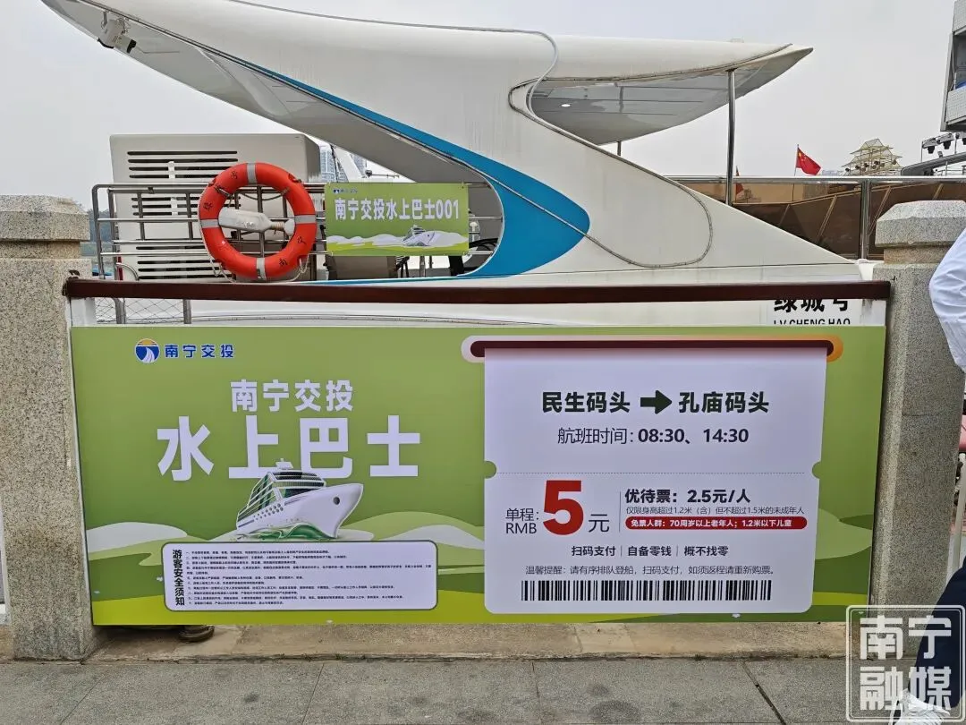 在票价方面,该航线实行惠民票价,成人单程5元/人次,针对儿童、老年人等群体设有优惠,具体票价以现场公示为准。乘客可在民生码头、孔庙码头售票处现场购票。如需咨询班次、余票等相关事宜,可拨打官方咨询电话0771—5587688咨询。