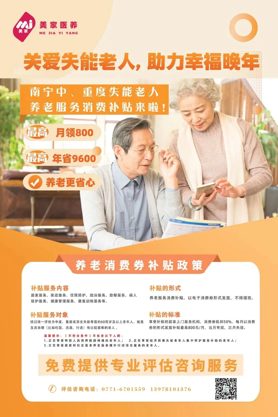 >南宁中重度失能老人看过来!最高每月领 800 元养老消费补贴,申领流程收好→