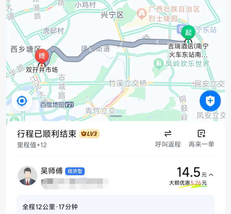 我看了下交通,距离南宁东站12公里,地铁每人4块钱,外加步行1公里多,而打车门到门才14块。