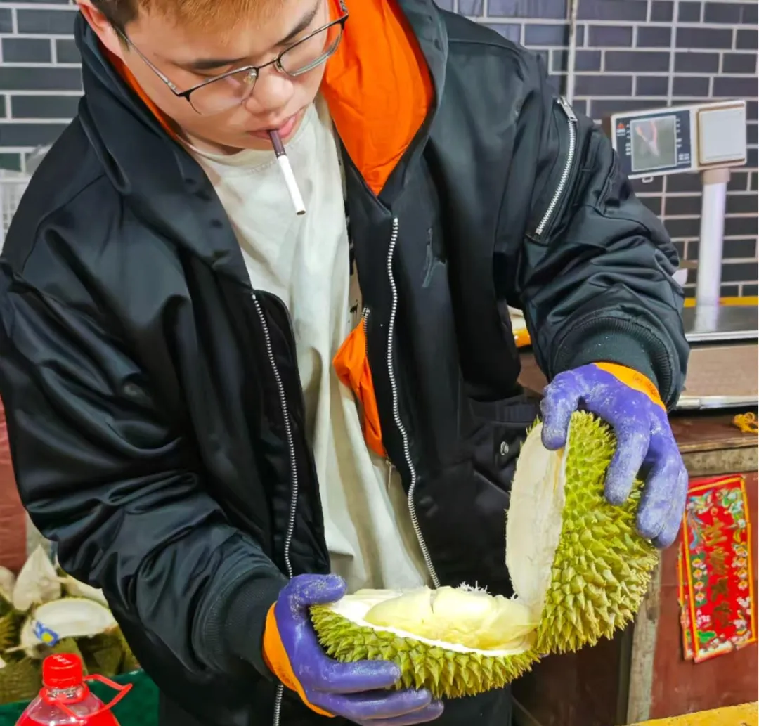 不得不说,小哥这开榴莲的姿势很帅...