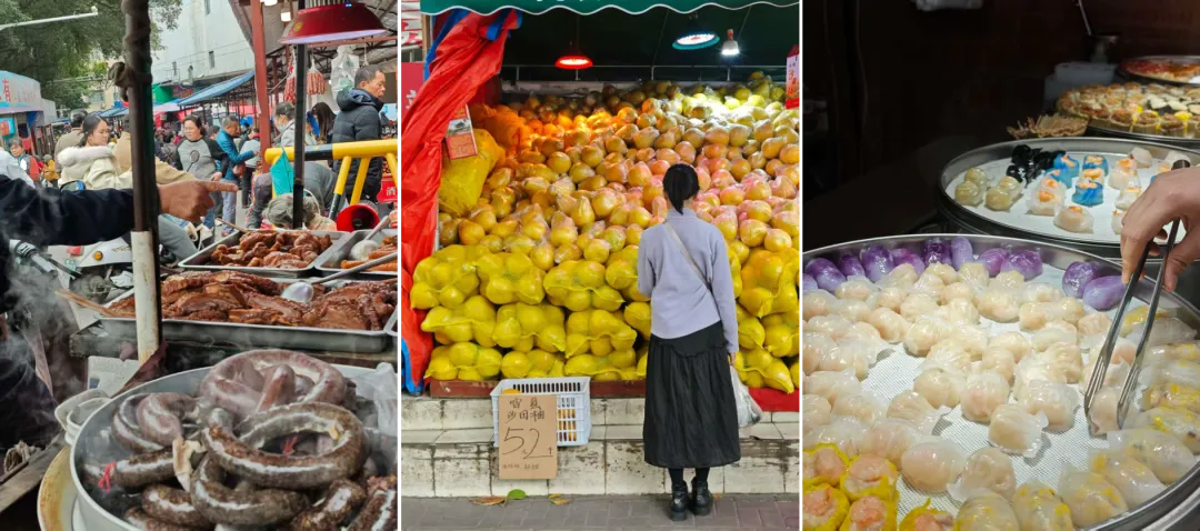 趁她挑金桔的时候,我和女儿在市场门口买了个拳头大的煎堆,才一块钱,既脆香又软糯,神奇了;回过头去看,老婆拎着金桔又买到扣肉皮和血肠,还有些五颜六色点心,手里已经快拎不下了...