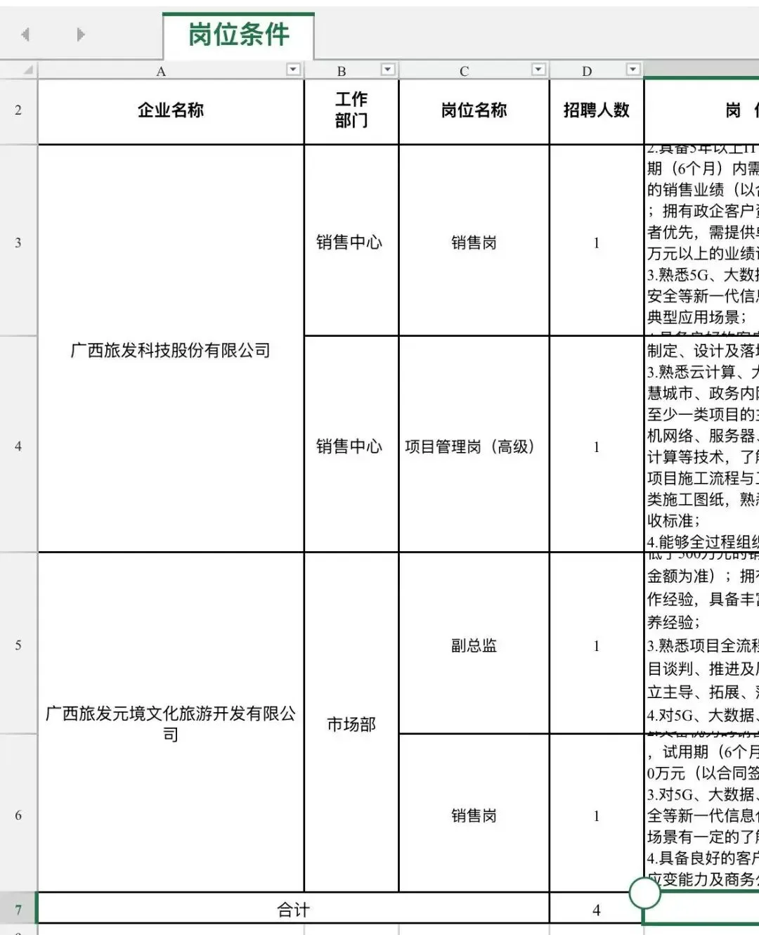 各招聘岗位任职要求详见《广西旅发科技股份有限公司2026年2月份招聘岗位表》(详见附件)。