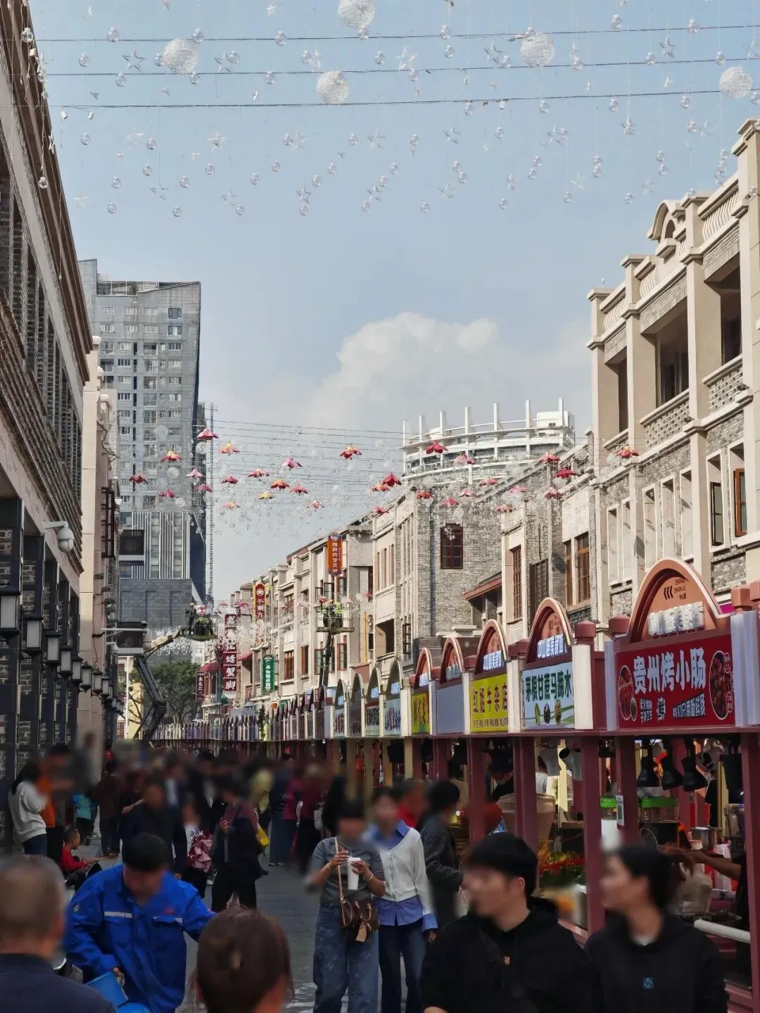 它惊艳亮相的同时,也带来些许疑问:“中山路的老店还在吗?”“围挡多年中山路能否重返顶流?”“原来的沥青道路为何要仿古打造?”实际来看,该保护修缮项目率先投入开放的是北起民族大道、南至南环路的中山路,全长约350米(百度测距),而共和路沿街店面仍在装修冲刺或有待招商。待到华灯初上,来逛中山路的人渐渐多了起来,竟有些摩肩接踵,很热闹。现在小吃摊摆在道路中间,“天然”分开两个通道,沿街门店前面无阻挡。摊位、门店都能享受到畅通流动的客流。固定摊位类似餐车,可遮阳避雨,整齐划一的装潢,颜值清爽,但也不好辨认谁是老店谁是新店,需要仔细回想。小道消息称,中山路大概有200个摊位,统一收银,每个摊位的摊车押金为1万元,营业额按照一定比例抽成(A级区域月销售额≦2万元,21%),非回驻摊主保底租金为5000元/摊/月。②新店多,老店也不少