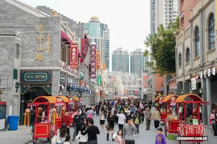 图为当日开街的中山路人头攒动。中新社记者 陈冠言 摄
