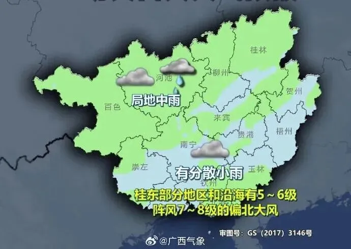 近两天受较强冷空气影响,广西将迎来降雨降温和大风天气