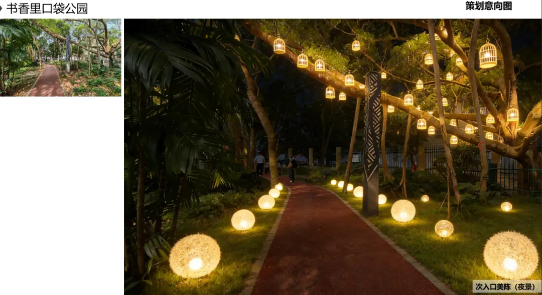 城市的小微空间,不仅是休闲载体,更是文化传播的微型窗口。南宁在打造小微公共空间时,始终坚持 **“文化融入”**,让每一个口袋公园都有自己的 “专属记忆”,避免千园一面。书香里口袋公园紧扣 “书香” 主题,搭配老照片展示墙、时光底片景墙,在休闲的同时承载邕城旧影的文化记忆;安华口袋公园融入壮族文化元素,设置民族特色景观雕塑,让市民在休闲中感受本土民族文化;仁和路奥园名门口袋公园以 “仁” 为设计主题,融入 “仁义礼智信” 中华优秀传统文化,成为户外文化课堂。就连儿童友好型口袋公园,也会结合主题设计童趣化的文化装置,让文化传承融入日常。这种文化赋能,让小微公共空间不再是城市里的 “复制粘贴”,而是成为触摸城市文化、感受城市温度的重要载体,让市民在休闲之余,更能产生对城市的认同感与归属感。运营创新:从 “政府兜底” 到 “轻资产造血”,探索空间长效发展