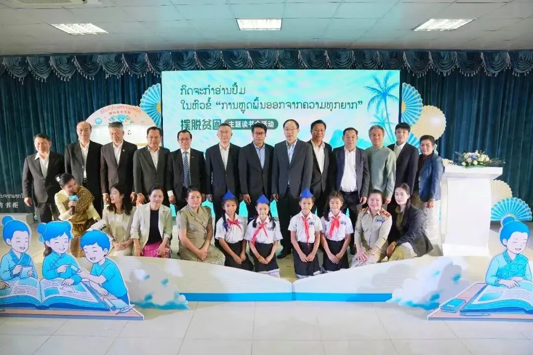 为增进中老两国友谊,携手推进减贫事业,2月6日,由中共云南省委宣传部、中国外文局亚太传播中心和老挝《人民报》主办,云南省南亚东南亚区域国际传播中心承办的“摆脱贫困”主题读书会活动在老挝国家图书馆举办。中国外文局副局长于运全向老挝国家图书馆馆长桑南·龙阿排赠送了《摆脱贫困》(老挝文版)。老挝中宣部副部长萨孔·蓬玛腊启动老挝国家图书馆“暖自南方”书柜。