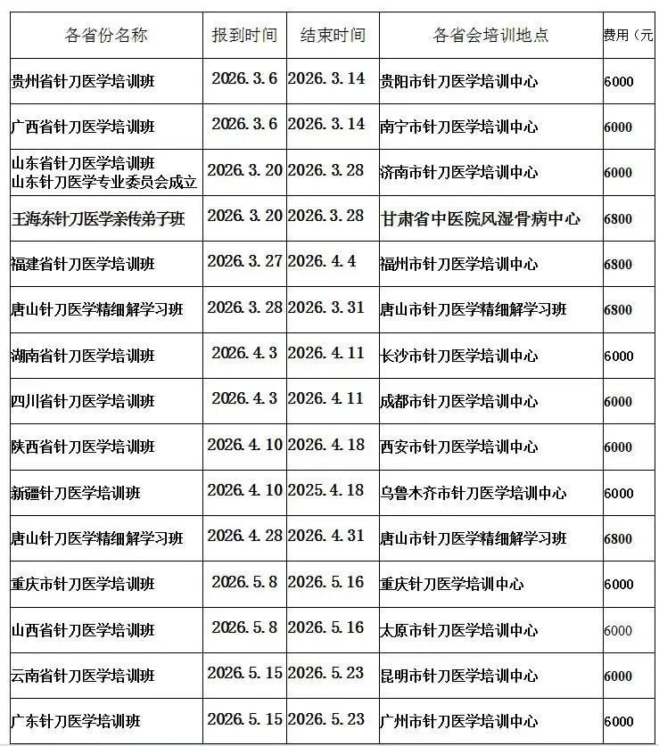腰 背 部 | ①针刀治疗腰段棘上韧带损伤 ②针刀治疗棘间韧带损伤 ③针刀治疗腹外斜肌损伤 ④针刀治疗腰肋韧带损伤 ⑤针刀门诊治疗、示教 | 3月12日(全天) 星期四 |