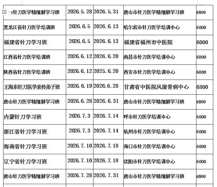 临 床 诊 疗 部 分 | 颈 项 部 | ①针刀治疗项韧带损伤 ②针刀治疗胸锁乳突肌损伤 ③针刀治疗肩胛提肌损伤 ④针刀治疗头夹肌损伤 | 3月8日(全天) 星期日 |