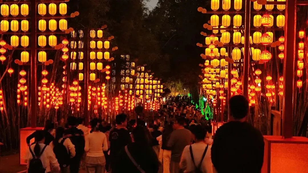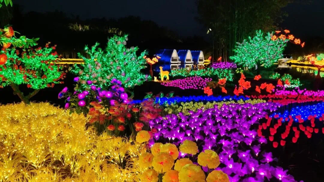 今年青秀山灯展占地约1430亩,覆盖东区叶子花园、丛林乐园、竹园、梅园、音乐大草坪等区域,超70组流光溢彩的灯组,规模非常庞大。