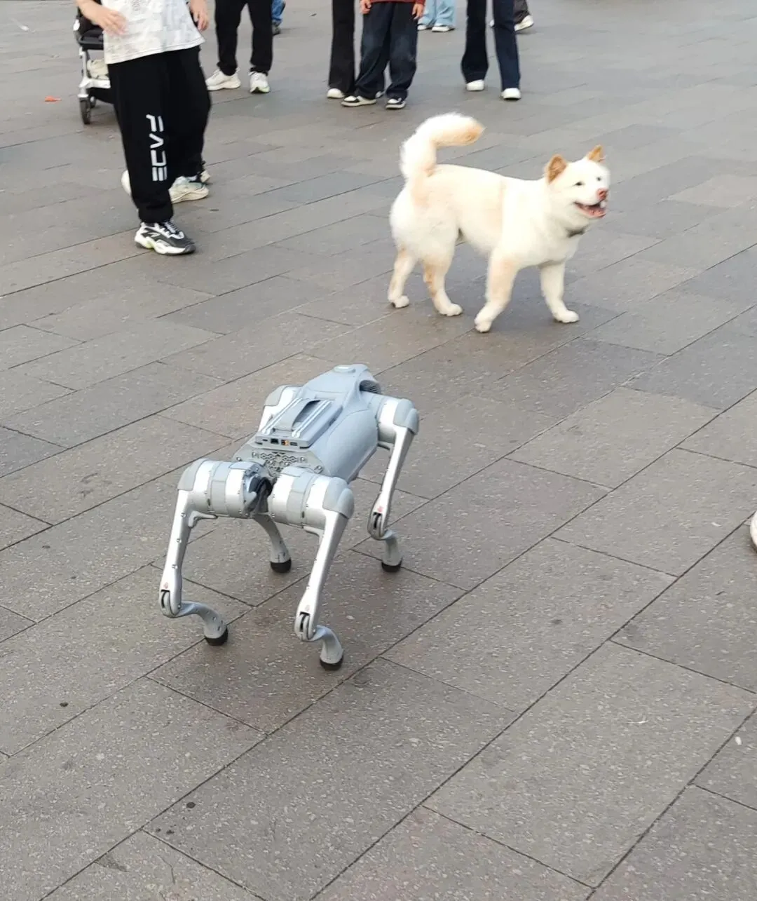 智能机器人、机器狗灵动巡游,并且和游客互动,非常有意思。