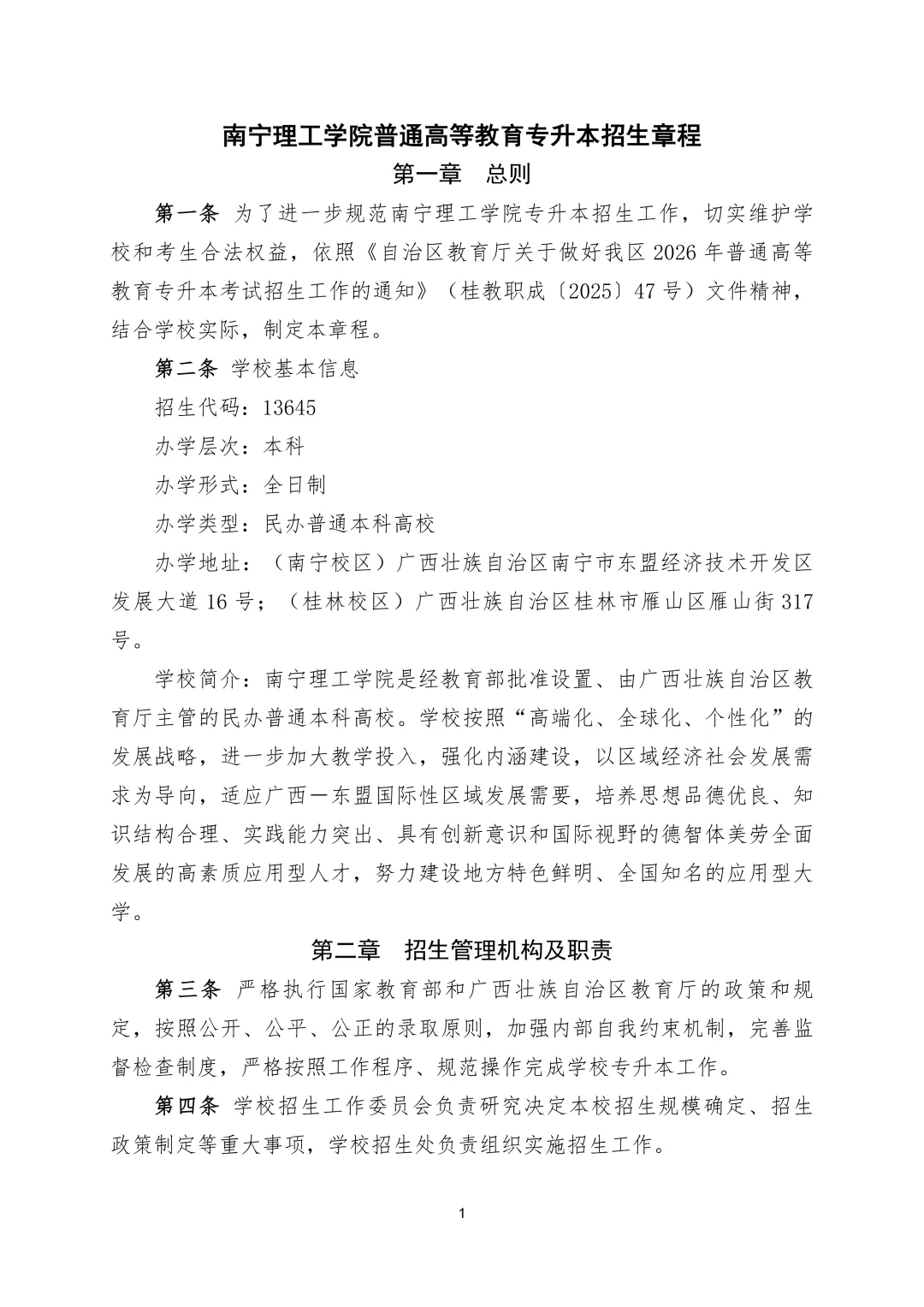 【招生简章】南宁理工学院普通高等教育专升本招生章程