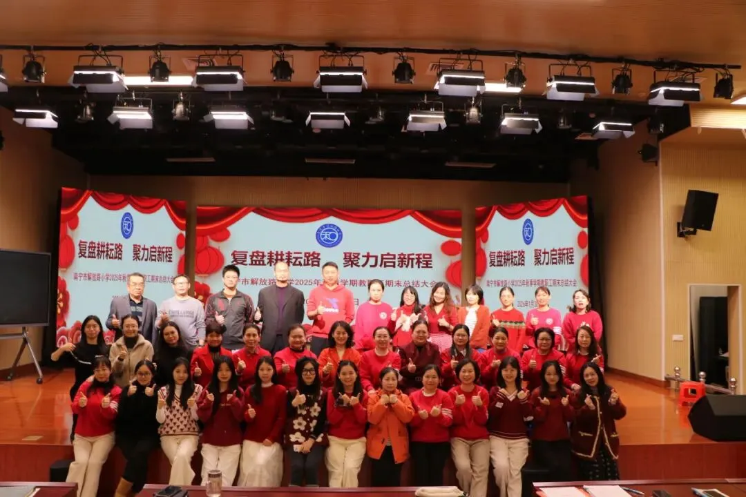 2026年1月30日下午,南宁市解放路小学2025年秋季学期教职工期末总结大会在三楼报告厅顺利召开,全体教职工参会,共同回顾本学期工作,谋划新学期发展。