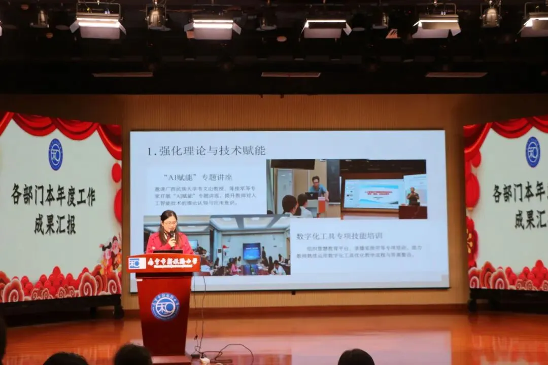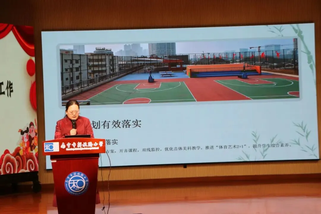 大会伊始,全体教职工合影留念,定格并肩奋斗的温暖瞬间。随后,各部门负责人依次上台汇报,从教育教学、德育活动、后勤保障、校园安全等维度,全面梳理本学期工作亮点与不足,用数据和案例展现了一学期的耕耘与收获。财务负责人作年度经费使用报告,确保经费管理公开透明;与会人员围绕下学期教学质量提升等议题展开热烈讨论,为学校发展建言献策。