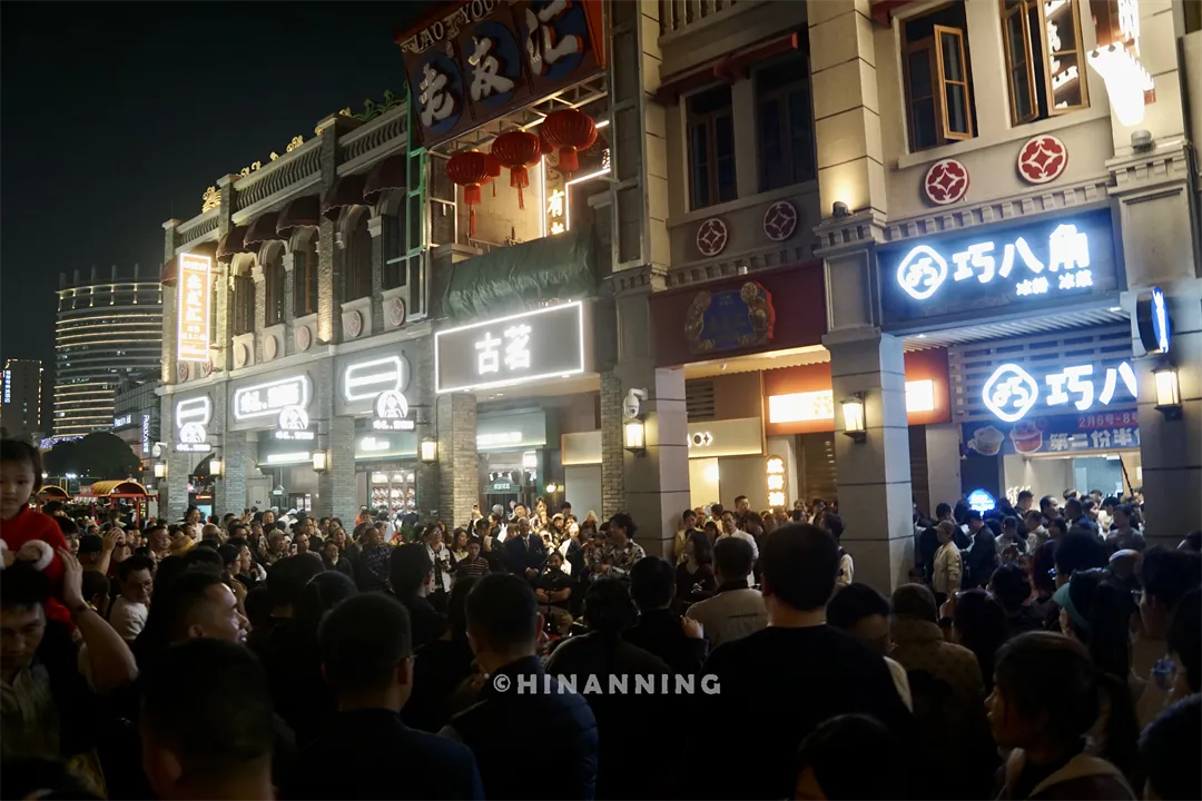 这次开街还同步完成了中山路、水街全时段步行街升级,和“三街两巷”连成一片,形成了广西规模最大的沉浸式步行街区。项目通过人车分流优化安全保障、提升游览质感,让骑楼建筑、老友文化、邕剧非遗等本土元素深度交融,打造可阅读、可沉浸、可感知的“老南宁”生活场景,为夜市经济、街头艺术拓展发展空间,有效激活夜间消费活力,推动朝阳商圈向高价值文旅体验区转型,在守护城市根脉与烟火气中注入持久人文动能。