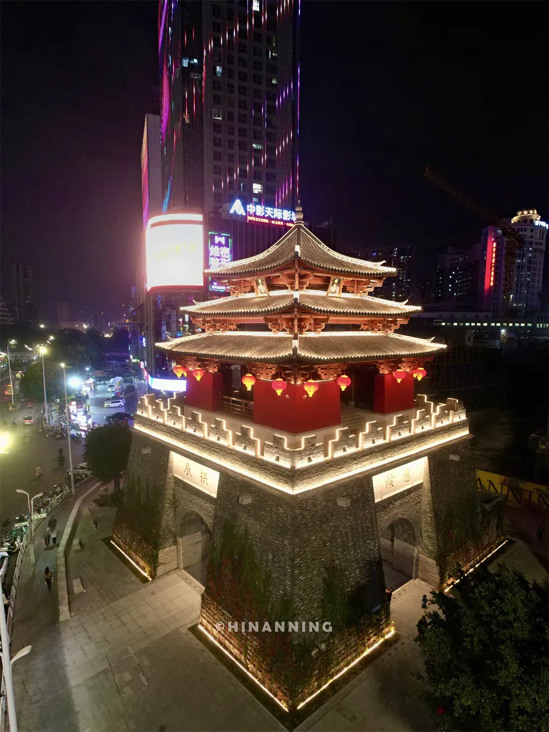 以“寻味邕州”为核心定位的中山路历史文化街区,在全国知名的美食街基础上实现了全面升级。它严格遵循“修旧如旧”原则,恢复了传统青砖骑楼风貌,还复建了明代钟鼓楼这一标志性建筑,让它成为街区的视觉与文化焦点。