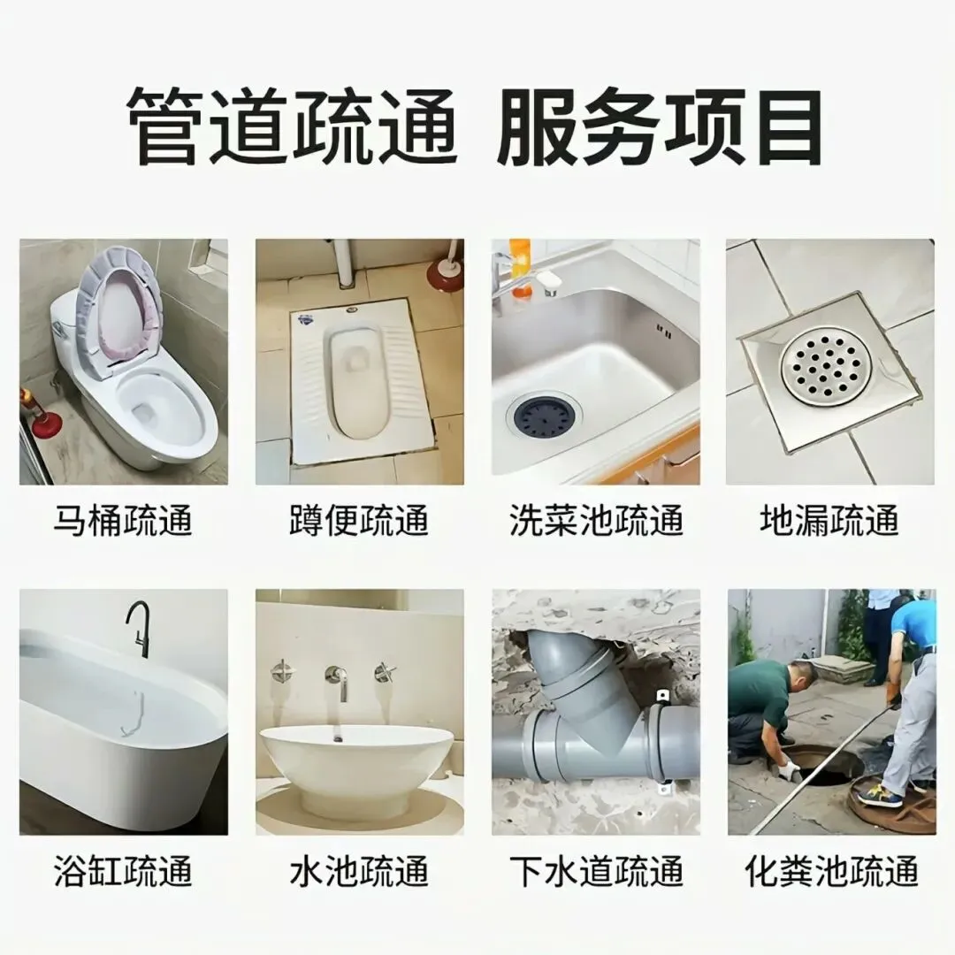 | 管道疏通 | 家用及大型疏通机处理各类疑难堵塞,专业疏通卫生间、地漏、浴缸、菜池、马桶等 |