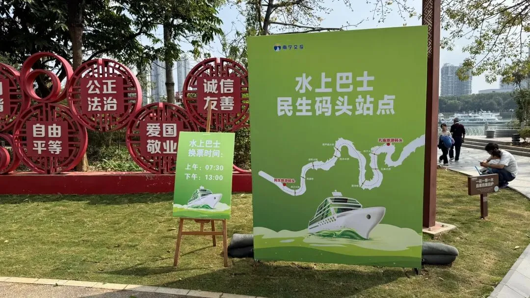 它有个起终点就是在民生广场民生码头这里,和夜游邕江是一样的。来到民生码头就看到这个牌牌了!