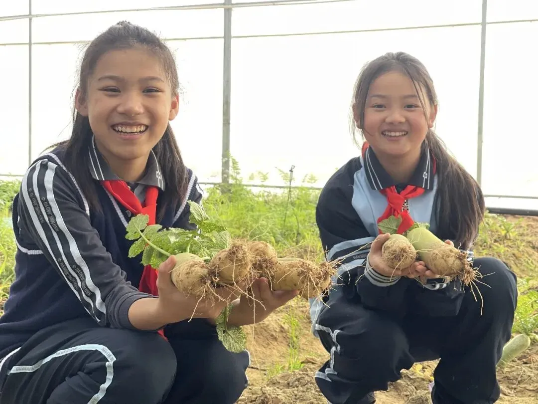田间地头,劳动的热潮同样涌动。调配营养土、小心翼翼地育苗移栽、弯腰采摘新鲜蔬菜,学生们分工协作,不亦乐乎。小学生们踮着脚尖,跟着老师学习分辨菜苗,哪怕手上沾了泥土,脸上也始终挂着灿烂的笑容;初中生们主动承担起较重的活计,互帮互助中体会着团结的意义;大学生们则一边劳作,一边和基地工作人员交流农业发展现状,把课堂知识与实际生产紧密结合。“以前从没有种过菜,今天亲手种下的小苗,就像种下了希望。”南宁市五象湖初级中学学生韦陆亦说,劳作的疲惫让她读懂了“劳动最光荣”的真谛,也更加珍惜当下的生活。