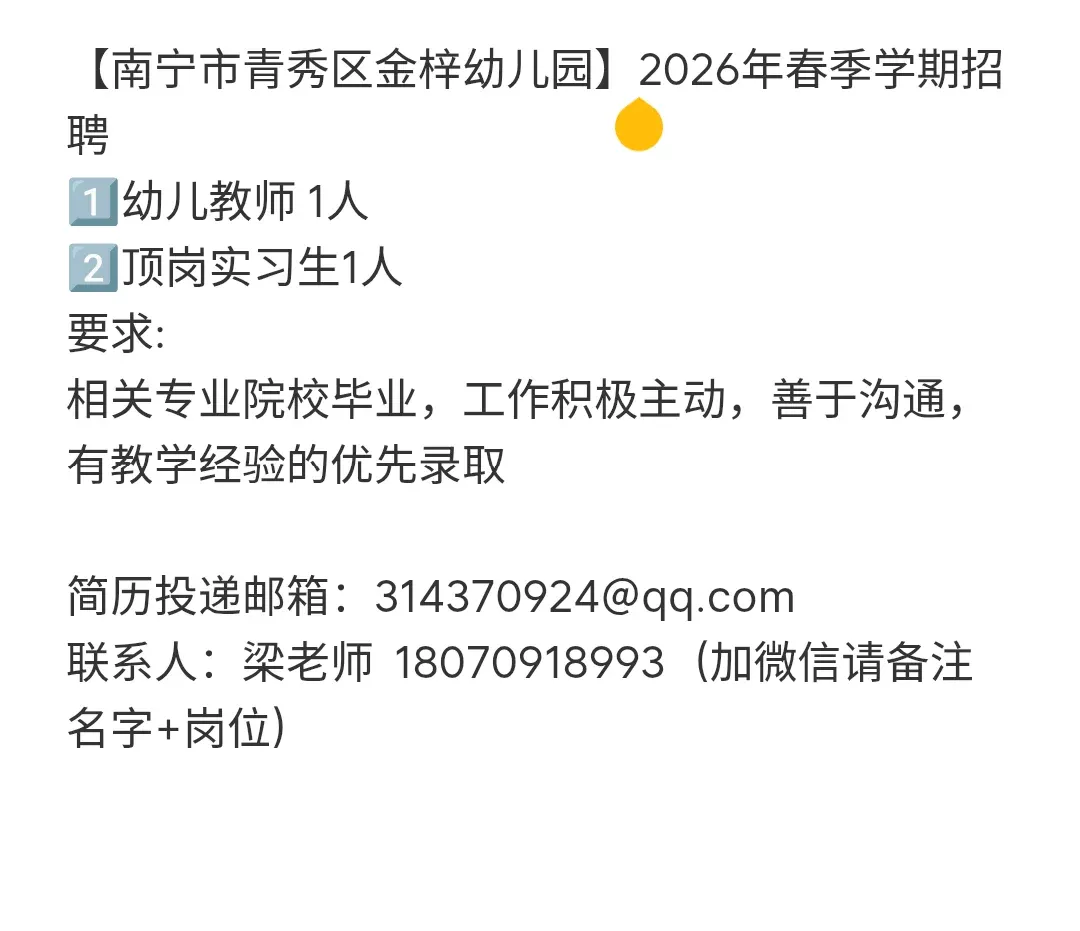 南宁教师招聘:南宁市青秀区金梓幼儿园招聘