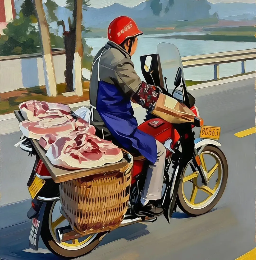 以前我爸是在村里卖猪肉,就是那种一辆125的摩托车,后架绑着一个木托架,猪肉放在木托里面,去到哪个村口就大声喊“卖猪肉”