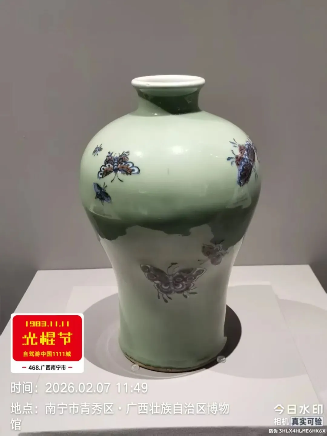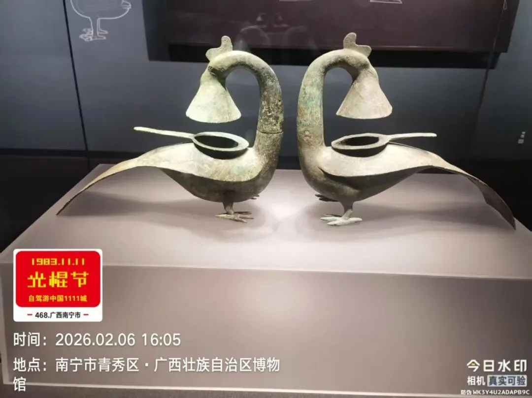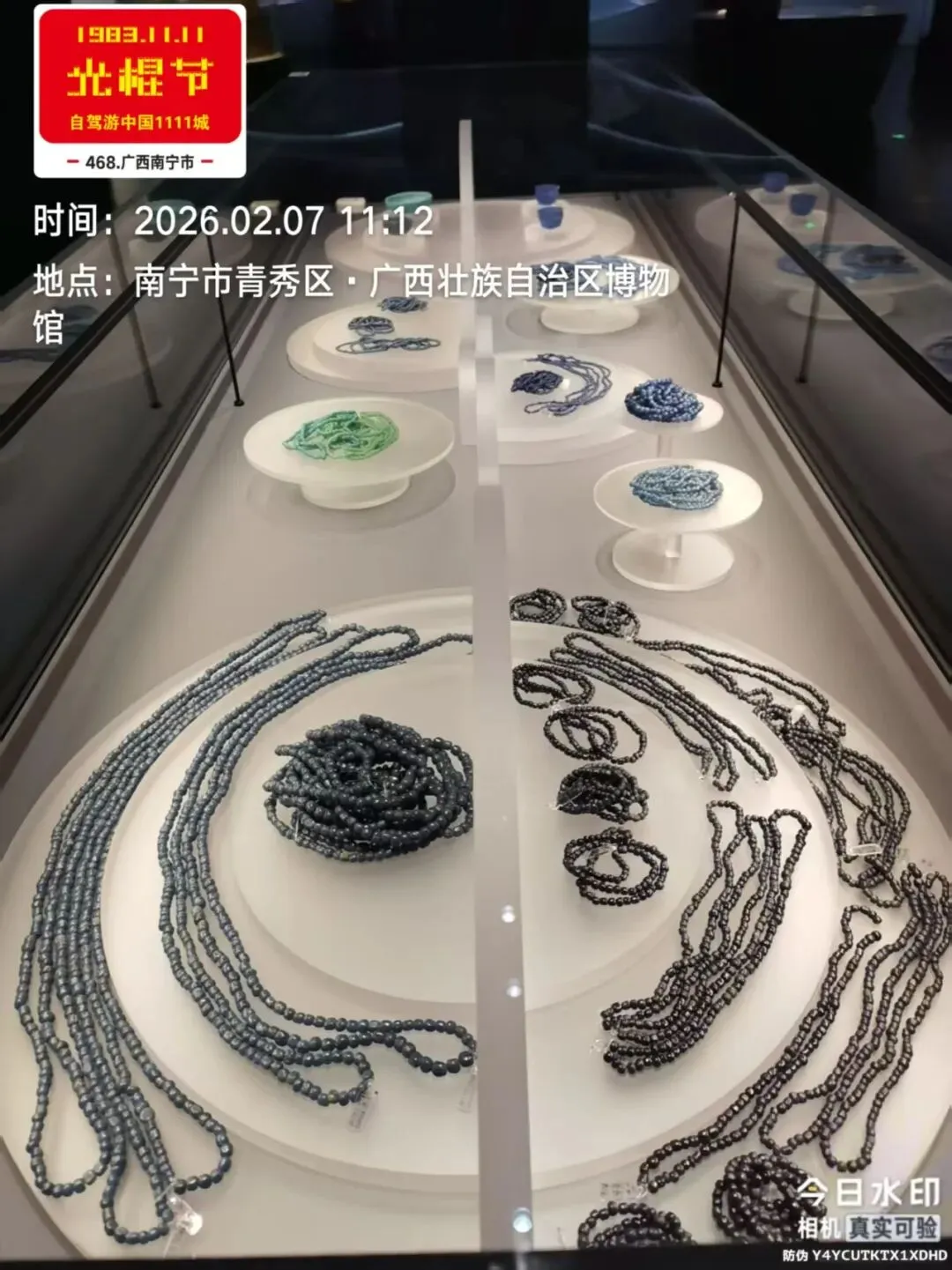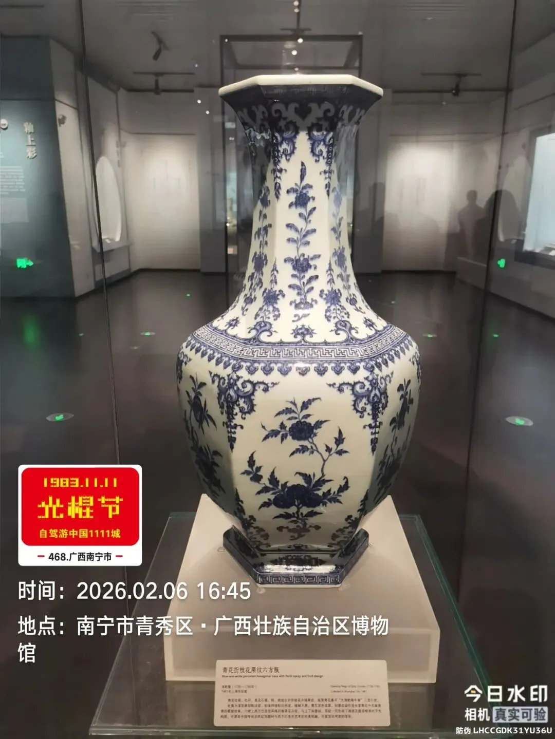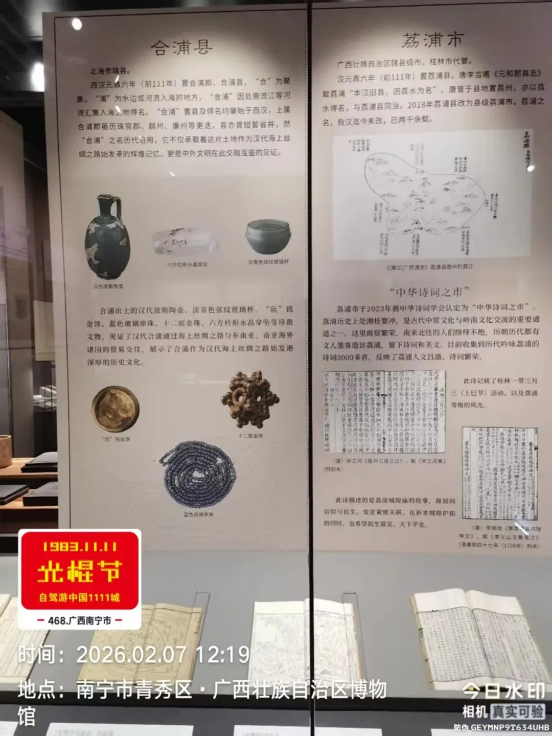 昨天下午来到广西壮族自治区博物馆的时候,发现旁边是个公园,而且景色不错,就在里面转了转,拍了几张照片。这件“元青花”是从横州市博物馆里调上来的,虽然在那里我没有看到真品,但在广西壮族自治区自治区博物馆里,我终于看到了它的“真面目”。这件西汉“翔鹭纹铜鼓”,1976年出土于贵县(今贵港市)罗泊湾1号墓。是广西壮族自治区博物馆的镇馆之宝。“合浦启航——广西汉代海上丝绸之路”。