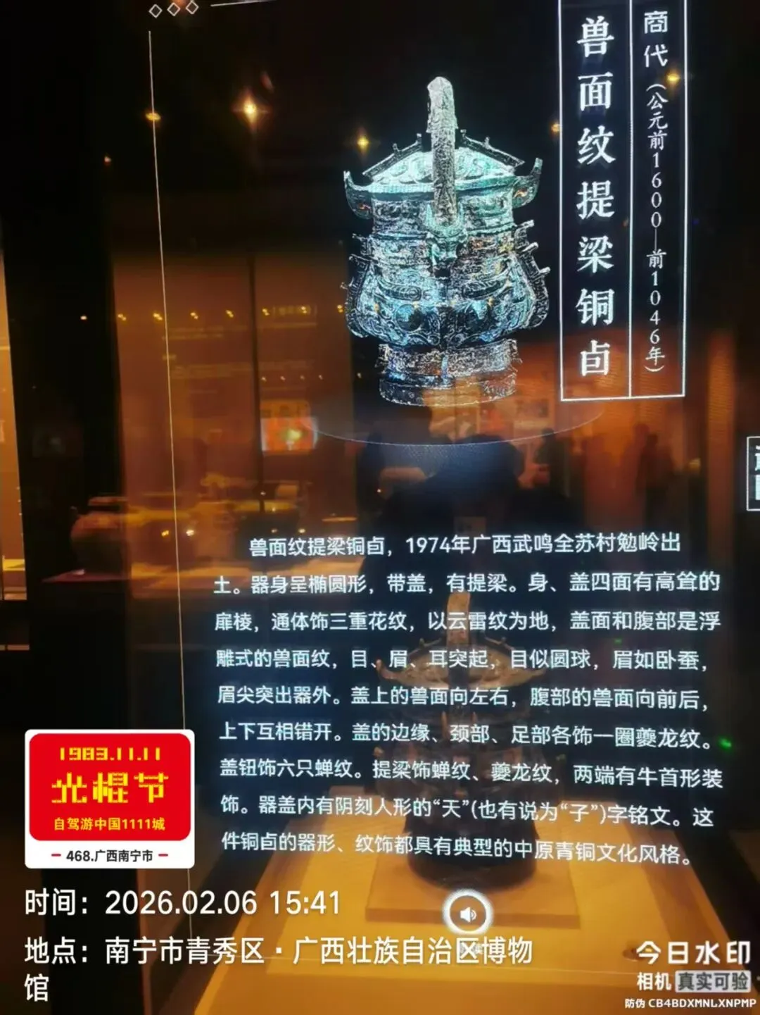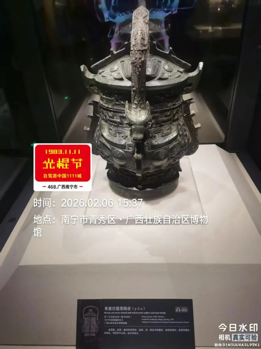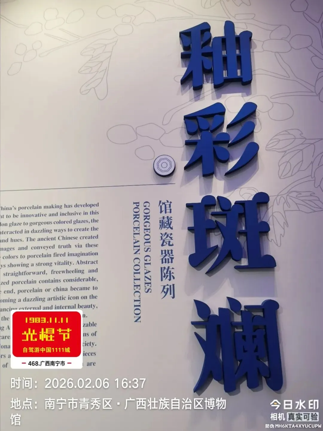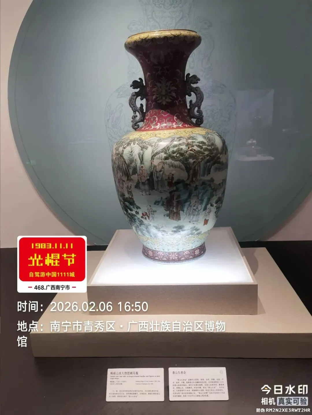昨天下午来到广西壮族自治区博物馆的时候,发现旁边是个公园,而且景色不错,就在里面转了转,拍了几张照片。这件“元青花”是从横州市博物馆里调上来的,虽然在那里我没有看到真品,但在广西壮族自治区自治区博物馆里,我终于看到了它的“真面目”。这件西汉“翔鹭纹铜鼓”,1976年出土于贵县(今贵港市)罗泊湾1号墓。是广西壮族自治区博物馆的镇馆之宝。“合浦启航——广西汉代海上丝绸之路”。