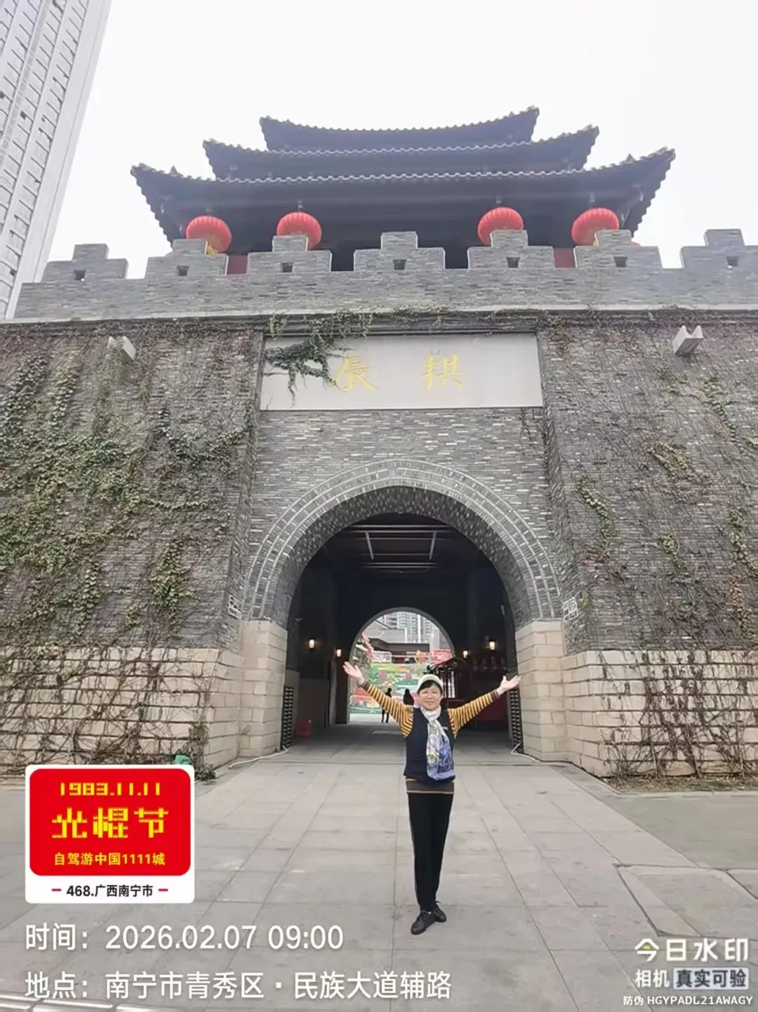 早上出门挺早的,只不过先去的是“三街两巷历史文化街区”。在江边“南宁古城墙”处拍照打卡。