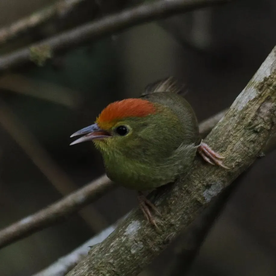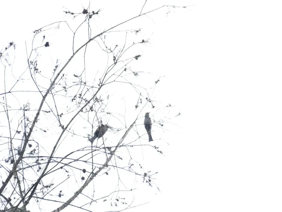 三十米高大树木枝头飞来了小群黑短脚鹎雄鸟,白头黑身红嘴红脚,外加吵闹,是我对它们的印象。再走进树林,又一小群的雌鸟聚集在树木中层,吵来吵去。雌鸟整体呈黑褐色的,头颈非纯白而与身体色差小,一样具有标志性的红嘴红脚和吵闹习性。在暗淡的光线下,就只见众多黑影飞来飞去,热闹非凡却又难以细观。