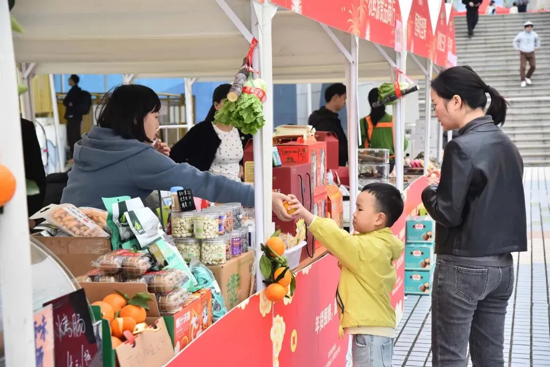 这里把最具烟火气的“菜市场”搬进了童话公园,淡村特色年货创意市集上,摊位琳琅满目、好物云集,印着“福”字的手工年糕、寓意吉祥的年粽、新鲜欲滴的蔬果、地道正宗的特色干货应有尽有,一站式满足市民年货采购需求。